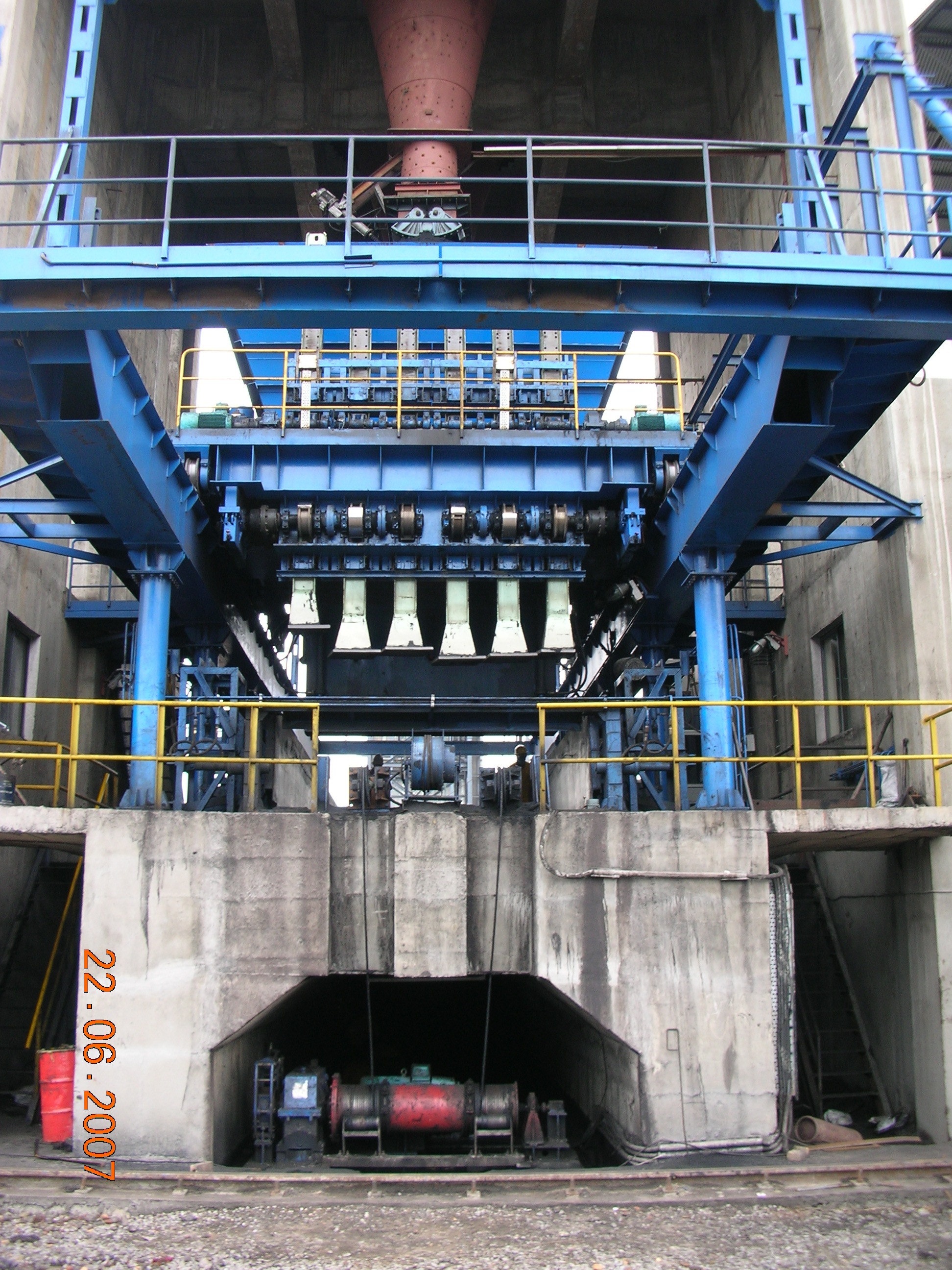 熱回收型焦?fàn)t機(jī)械設(shè)備,包含煉焦流程的全套機(jī)械設(shè)備:液壓搗固站完成煤粉的轉(zhuǎn)運(yùn)、將松散煤粉壓制成密實成型煤餅、協(xié)助將煤餅轉(zhuǎn)運(yùn)至裝煤車的工作;裝煤推焦車的裝煤機(jī)構(gòu)接收煤餅并將其輸送至炭化室進(jìn)行煉焦,其推焦機(jī)構(gòu)將煉制完成的焦炭推送至熄焦車;熄焦車接收熾熱焦炭,并在熄焦塔下下完成熄焦工作;電機(jī)車是熄焦車的牽引設(shè)備,完成焦炭由煉焦?fàn)t區(qū)到熄焦塔/干熄焦區(qū)的轉(zhuǎn)運(yùn)