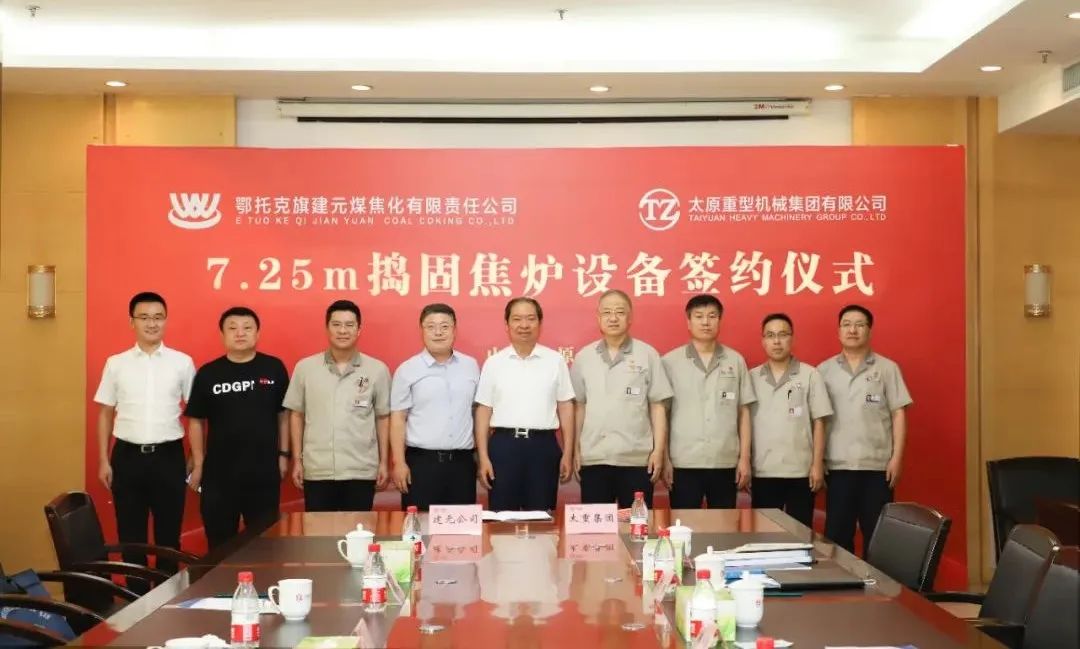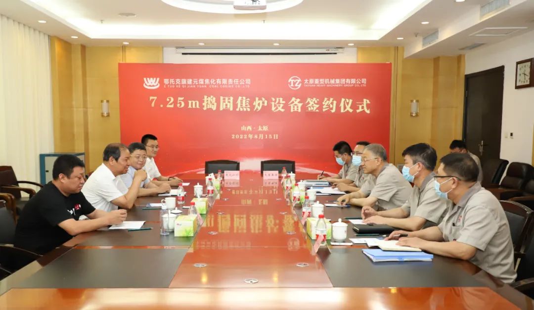 8月15日,太重集團與鄂托克旗建元煤焦化有限責任公司舉行7.25米搗固焦爐設備合作簽約儀式。這是繼6.25米后,太重集團為該公司提供的第7套分體搗固焦爐設備。集團公司黨委書記、董事長韓珍堂與鄂托克旗建元煤焦化有限責任公司董事長樊三維分別代表雙方進行簽約。