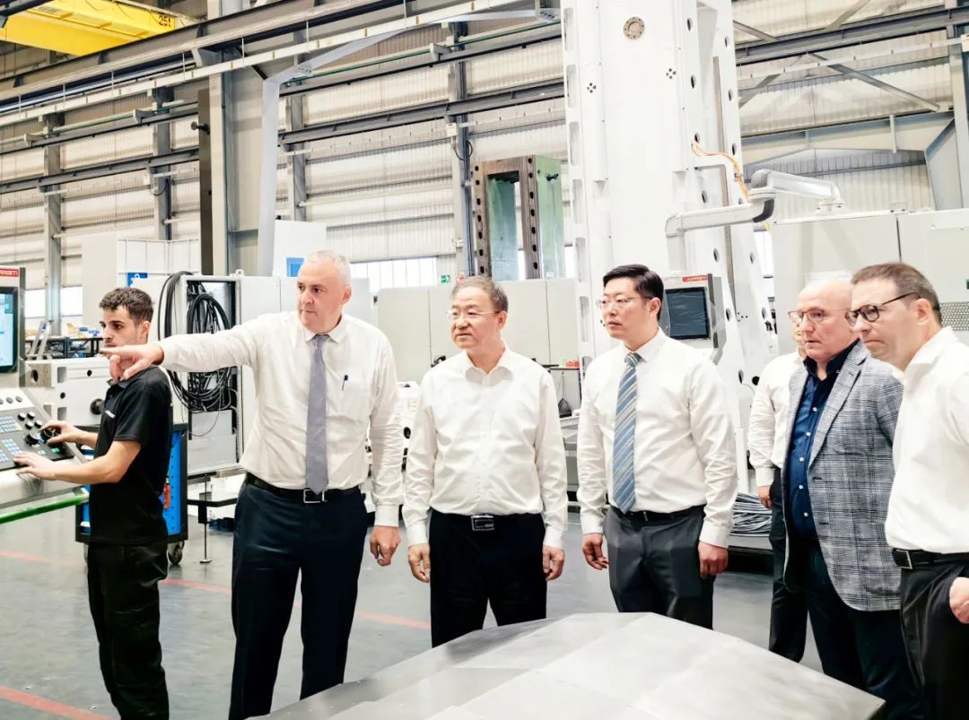 華日斯蒂公司(JUARISTI)成立于1941年,是世界一流的提供定制化鏜銑方案的研發(fā)制造廠商,專業(yè)并專注于臥式鏜銑解決方案的創(chuàng)新、研發(fā)和制造,被譽為“重型切削鏜銑床制造專家”。在華日斯蒂公司的裝配工廠,韓珍堂沿著智能生產(chǎn)線從頭走到尾,邊走邊看、邊聽邊問,在比較中思考、在交流中學(xué)習(xí)。他表示,當(dāng)前國際市場形勢嚴(yán)峻復(fù)雜,面對激烈的市場競爭,太重對內(nèi)改革、對外開放,把改革創(chuàng)新和產(chǎn)業(yè)發(fā)展擺在轉(zhuǎn)型升級的核心關(guān)鍵位置,優(yōu)化頂層設(shè)計、厚植創(chuàng)新發(fā)展、深耕智能制造,通過調(diào)整產(chǎn)業(yè)結(jié)構(gòu)、強(qiáng)化項目建設(shè),加快推動戰(zhàn)略性新產(chǎn)品批量化、規(guī)?;a(chǎn),全力打造行業(yè)標(biāo)桿式的“燈塔工廠、智能工廠、黑燈工廠”。華日斯蒂公司卓越的設(shè)計理念、出眾的設(shè)備性能、精湛的加工工藝,值得太重學(xué)習(xí)借鑒。雙方都有著深厚的歷史底蘊,實力雄厚、優(yōu)勢明顯,具備廣闊的合作空間,希望今后能密切聯(lián)系,多渠道多舉措開展合作,以合力迎挑戰(zhàn)、以共識促共贏,全力打造中外制造業(yè)合作新格局。針對目前合作項目,韓珍堂強(qiáng)調(diào),雙方要緊密聯(lián)系、全面協(xié)同,優(yōu)化項目方案、加強(qiáng)統(tǒng)籌協(xié)調(diào),共同推動合作項目盡快落地、早見成效,在開放合作中共享共贏。Pablo Juaristi對韓珍堂一行的到來表示熱烈歡迎,并介紹了華日斯蒂公司的產(chǎn)業(yè)布局、產(chǎn)品種類等。他說,太重是中國裝備制造業(yè)的龍頭企業(yè),能夠見證和參與太重建設(shè)具有國際一流競爭力的現(xiàn)代智能裝備制造企業(yè),深感榮幸和自豪。華日斯蒂公司將充分發(fā)揮自己的技術(shù)優(yōu)勢,不斷完善服務(wù)體系,提高服務(wù)質(zhì)量,全面保障交貨,用更大力度、更實舉措推動雙方合作向更寬領(lǐng)域、更深層次、更高水平邁進(jìn)。