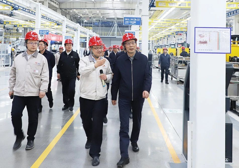 聯(lián)合車間內(nèi),智能焊接機器人各司其職,AGV小車來往穿梭,各領(lǐng)域產(chǎn)品部件整齊擺放,多工序作業(yè)人員高效協(xié)同。范兆森先后對液壓挖掘機的焊接、機加工、涂裝、裝配制造流程進行了解,詢問了太重在智能制造、科技創(chuàng)新、綠色環(huán)保以及延鏈補鏈建鏈強鏈等方面所做的工作和取得的成效,對看到的智能化、信息化、精細化管理細節(jié)表示稱贊。他強調(diào),為企業(yè)紓困解難是義不容辭的責(zé)任,綜改示范區(qū)將不斷提高站位,加強服務(wù)保障力度,進一步整合資源、精準(zhǔn)發(fā)力,加大對企業(yè)創(chuàng)新支持力度,助力產(chǎn)業(yè)項目早日達產(chǎn)達效。同時,將結(jié)合企業(yè)現(xiàn)實需求和長遠發(fā)展需要,大力支持園區(qū)生產(chǎn)生活和生態(tài)環(huán)境配套設(shè)施完善,助力企業(yè)開展園區(qū)綠化、環(huán)境治理等各項工作,持續(xù)提升產(chǎn)業(yè)項目的含金量、含新量、含綠量。希望太重繼續(xù)發(fā)揚艱苦奮斗、開拓進取的精神,全力攻堅“卡脖子”技術(shù)難題,搶占產(chǎn)業(yè)發(fā)展的制高點,打造更多國之重器。陶家晉對綜改示范區(qū)長期以來的高度關(guān)注和大力支持表示感謝。他指出,近年來,太重作為我省裝備制造業(yè)的龍頭企業(yè),以“做強傳統(tǒng)產(chǎn)品、做優(yōu)轉(zhuǎn)型產(chǎn)品、做大批量產(chǎn)品”為方向,全力推動產(chǎn)業(yè)轉(zhuǎn)型升級,建設(shè)世界上單一工廠規(guī)模最大、工序最全的挖掘機智慧工廠,實現(xiàn)產(chǎn)業(yè)布局不斷優(yōu)化,產(chǎn)能規(guī)模持續(xù)提升。同時,公司圍繞高端化、智能化、綠色化、國產(chǎn)化產(chǎn)品發(fā)展方向,研發(fā)了多種新能源動力裝備,為產(chǎn)業(yè)鏈綠色健康發(fā)展提供了有力支撐。公司將積極配合綜改示范區(qū)做好各項工作,搶抓市場機遇,強化技術(shù)引領(lǐng),為推動山西制造業(yè)振興升級、建設(shè)中部地區(qū)先進制造業(yè)基地作出更大貢獻。公司相關(guān)單位負責(zé)人陪同調(diào)研。