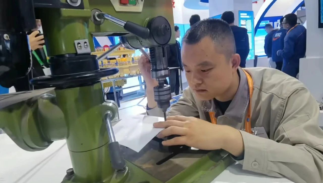 太重的產(chǎn)品模型種類繁多,太重職工也大放異彩!在三晉工匠風采展示墻上,集團公司職工樊志勤、陳賓兩位勞模工匠的照片引人注目,生動展示著太重人的精神面貌和工匠風采。齒傳分公司職工單璐還現(xiàn)場展示了技藝絕活,引得參觀者駐足圍觀。大家屏息凝神、目光專注,只見操作者在手機上放置了一張厚度僅有0.1毫米的A4紙,通過手動操作臺鉆在紙張上精準地打出了圓孔,但手機屏幕完好無損,出神入化的技藝贏得了現(xiàn)場觀眾的陣陣掌聲。