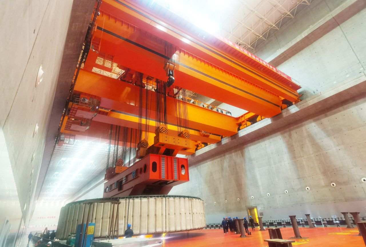隨著指揮一聲哨響,近日,在兩臺太重“TZ”橋式起重機的合力吊裝下,國內(nèi)某大型水電站2300噸轉子一次性起吊成功,圓滿完成檢修關鍵任務。這是行業(yè)內(nèi)首次由高度智能化的水電站起重機完成2000噸級以上大型起吊任務,太重“智慧方案”再次成為滿足用戶需求的“金鑰匙”。
