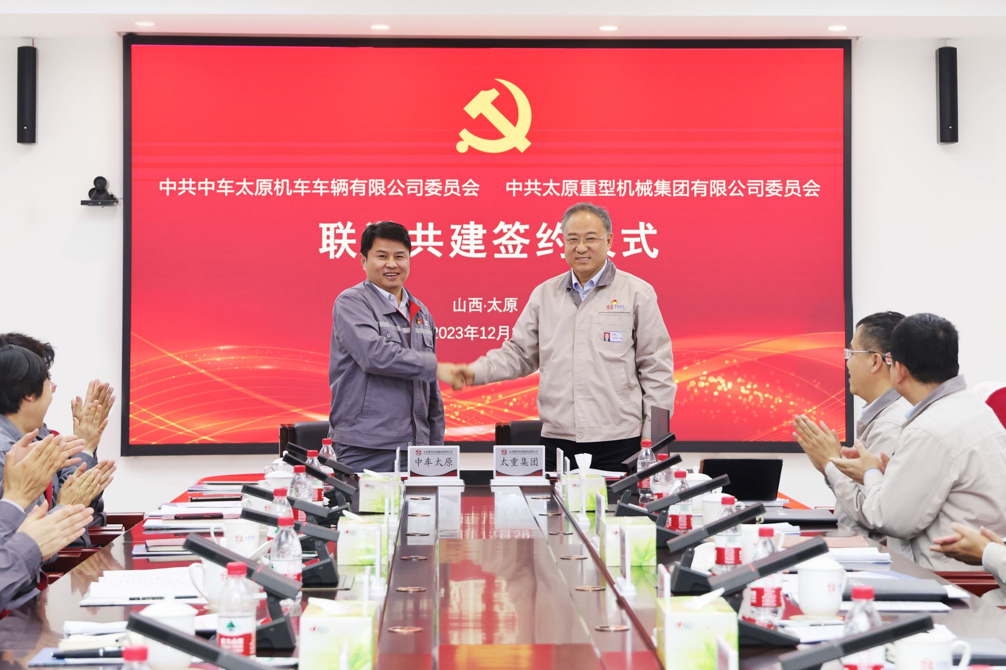 段云龍在研討交流中指出,在黨的二十大報告中,習近平總書記兩次提到“要著力提升產業(yè)鏈供應鏈韌性和安全水平”。每次回顧學習總書記的系列講話,都有一種“常學常新”“常思常新”的感覺。中車太原公司與太重集團作為山西省首批重點產業(yè)鏈“鏈主企業(yè)”,發(fā)展壯大實體經濟、推進新型工業(yè)化、維護產業(yè)鏈韌性及安全水平,我們都責任重大。中車太原公司持續(xù)深入貫徹落實習近平總書記考察調研山西重要講話重要指示精神,聚焦主責主業(yè),加快全產業(yè)鏈布局。公司在產品研發(fā)、市場開拓、產品采購等方面與省內“鏈上”企業(yè)深度合作,提高關鍵重要部件省內配套占比,實現(xiàn)強鏈補鏈延鏈。希望雙方可以針對性聯(lián)合開展黨的創(chuàng)新理論學習研討,為全力推動山西重點產業(yè)鏈高質量發(fā)展奠定思想基礎,促進雙方各系統(tǒng)人員業(yè)務能力、攻關能力、創(chuàng)新能力有效提升,共同在強鏈、補鏈、延鏈上發(fā)揮優(yōu)勢、挖掘潛能、形成合力,全方位推進我省工業(yè)經濟轉型和產業(yè)鏈高質量發(fā)展。雙方簽訂了《聯(lián)學共建協(xié)議書》,并表示,將以此次聯(lián)學共建主題活動為契機,圍繞“抓黨建促產業(yè)鏈協(xié)同發(fā)展、促山西經濟轉型升級”主線, 有組織、有重點地開展聯(lián)學共建相關活動, 通過互學互融、共建聯(lián)建,實現(xiàn)資源共享、優(yōu)勢互補,攜手為山西重點產業(yè)鏈提質換擋再升級貢獻智慧和力量。雙方還進行了現(xiàn)場研學。在公司領導陶家晉、張新偉的陪同下,中車太原公司一行11人重走習近平總書記考察調研太重之路,現(xiàn)場調研參觀了太重軌道公司車輪廠二線全部工藝環(huán)節(jié),見證了“不到一分鐘生產一片車輪”的智造實力。舉行重溫入黨誓詞活動,再一次接受黨性洗禮,堅定理想信念。參觀了太重集團展覽中心,詳細了解公司生產經營、產業(yè)布局、科技創(chuàng)新、項目建設等情況,直觀感受了公司在推動裝備制造轉型升級發(fā)展過程中的創(chuàng)新舉措和取得的成效。太重集團與中車太原公司是數十載的重要戰(zhàn)略合作伙伴,雙方在共同培育、推動山西省軌道交通產業(yè)鏈發(fā)展上始終堅持“協(xié)同創(chuàng)新、互促共融”的良好態(tài)勢,通力合作推動山西軌道交通裝備和整體產業(yè)鏈提質換擋,并推動“山西制造”走出國門,讓“山西品牌”在海外受到廣泛關注和贊許。下一步,雙方將“共學理論、同掌思想之舵,共研技術、同聚攻關之力,共謀發(fā)展、同鑄先鋒之志”,結成牢不可破的事業(yè)共同體,加強產業(yè)鏈協(xié)同創(chuàng)新、協(xié)同營銷和協(xié)同競爭,在踐行領袖囑托上展現(xiàn)新作為,在推動高端裝備制造業(yè)鏈式集群發(fā)展上體現(xiàn)新?lián)?,攜手開創(chuàng)我省高端裝備制造的新輝煌!