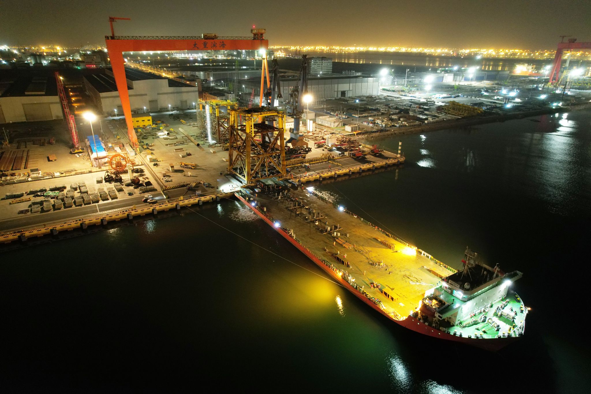 該項(xiàng)目是濱海公司與用戶簽訂合作協(xié)議后建成的首個(gè)項(xiàng)目,項(xiàng)目組克服氣候等不利影響因素,高效組織、加班加點(diǎn),歷時(shí)100天建造周期順利完成。建成后的導(dǎo)管架在太重碼頭裝船后,將前往我國渤海遼東灣海域LD5-2北油田進(jìn)行服務(wù),為推動(dòng)海上油氣增儲(chǔ)上產(chǎn)、保障國家能源安全貢獻(xiàn)太重力量。