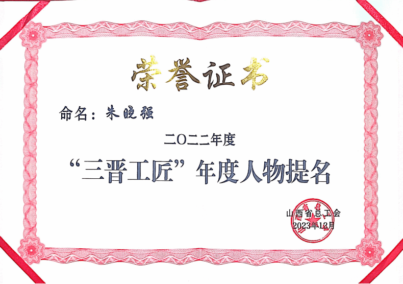 近日,在山西省總工會、山西日報和山西廣播電視臺共同主辦的2022“三晉工匠”年度人物發(fā)布晚會上,公司職工朱曉強喜獲2022“三晉工匠”年度人物提名獎。