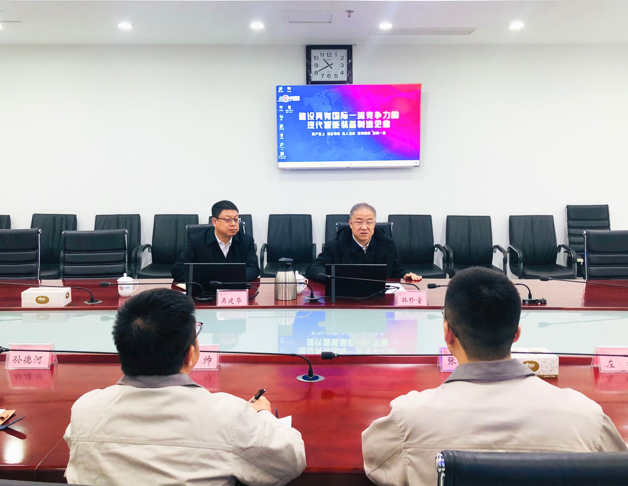 “四不兩直”的調(diào)研就是要達(dá)到“求深、求實(shí)、求細(xì)、求準(zhǔn)、求效”的目的。調(diào)研過程中堅(jiān)持“問題導(dǎo)向”,最終目的就是要解決問題。如何進(jìn)一步統(tǒng)一思想、提高認(rèn)識(shí)、加強(qiáng)管理,韓珍堂再次以現(xiàn)場(chǎng)提問的方式為濱海公司把脈問診、指明方向。產(chǎn)品創(chuàng)新取得哪些突破?港機(jī)設(shè)備如何做大做強(qiáng)?鍛壓設(shè)備和集團(tuán)本部如何協(xié)同配合?如何體現(xiàn)成本優(yōu)勢(shì)?營銷怎么拿訂單?這五個(gè)問題至關(guān)重要,同時(shí)要落實(shí)好上次在礦山分公司調(diào)研時(shí)提出的“五個(gè)在哪里”。五問思考法,每個(gè)問題直指關(guān)鍵,每個(gè)意見直接明了,在四個(gè)小時(shí)的會(huì)議中,現(xiàn)場(chǎng)有問有答、有問必答、有答必果,成為濱海公司破解矛盾、撬動(dòng)發(fā)展、推動(dòng)目標(biāo)落實(shí)落地的良方。韓珍堂強(qiáng)調(diào),“三精三致三效”是公司推動(dòng)高質(zhì)量高速度發(fā)展堅(jiān)持的理念。聚焦當(dāng)前制約濱海公司發(fā)展的瓶頸問題,找準(zhǔn)生產(chǎn)經(jīng)營的切入點(diǎn)與著力點(diǎn),細(xì)化實(shí)化具體化各項(xiàng)措施辦法,才能達(dá)到事半功倍的效果,切實(shí)提升發(fā)展質(zhì)量、增加發(fā)展動(dòng)力。要統(tǒng)一思想、統(tǒng)一行動(dòng)、振奮精神、真抓實(shí)干,快速完成產(chǎn)品規(guī)劃執(zhí)行方案。相關(guān)負(fù)責(zé)人要進(jìn)一步解放思想、創(chuàng)新模式、靈活把控,加強(qiáng)可行性研究論證,做好項(xiàng)目前期規(guī)劃和測(cè)算工作,求真務(wù)實(shí)、擔(dān)當(dāng)實(shí)干,做到對(duì)全局和細(xì)節(jié)心中有數(shù);要打造高效協(xié)同的項(xiàng)目團(tuán)隊(duì),技術(shù)、營銷、生產(chǎn)等相關(guān)部門齊心協(xié)力、共同發(fā)力,推動(dòng)公司高質(zhì)量跨越式發(fā)展;要出新招、出實(shí)招、出硬招,做好引才、育才、留才工作,加快突破“卡脖子”難題;要堅(jiān)持對(duì)標(biāo)先進(jìn),強(qiáng)化精益管理,擴(kuò)大市場(chǎng)規(guī)模,抓好產(chǎn)品結(jié)構(gòu)調(diào)整,在現(xiàn)有市場(chǎng)、現(xiàn)有用戶、現(xiàn)有產(chǎn)品的基礎(chǔ)上,進(jìn)一步開拓新市場(chǎng)、尋求新賽道,奮力開創(chuàng)天津?yàn)I海產(chǎn)業(yè)園區(qū)轉(zhuǎn)型發(fā)展新局面。集團(tuán)公司副總經(jīng)理吳建華陪同調(diào)研。
