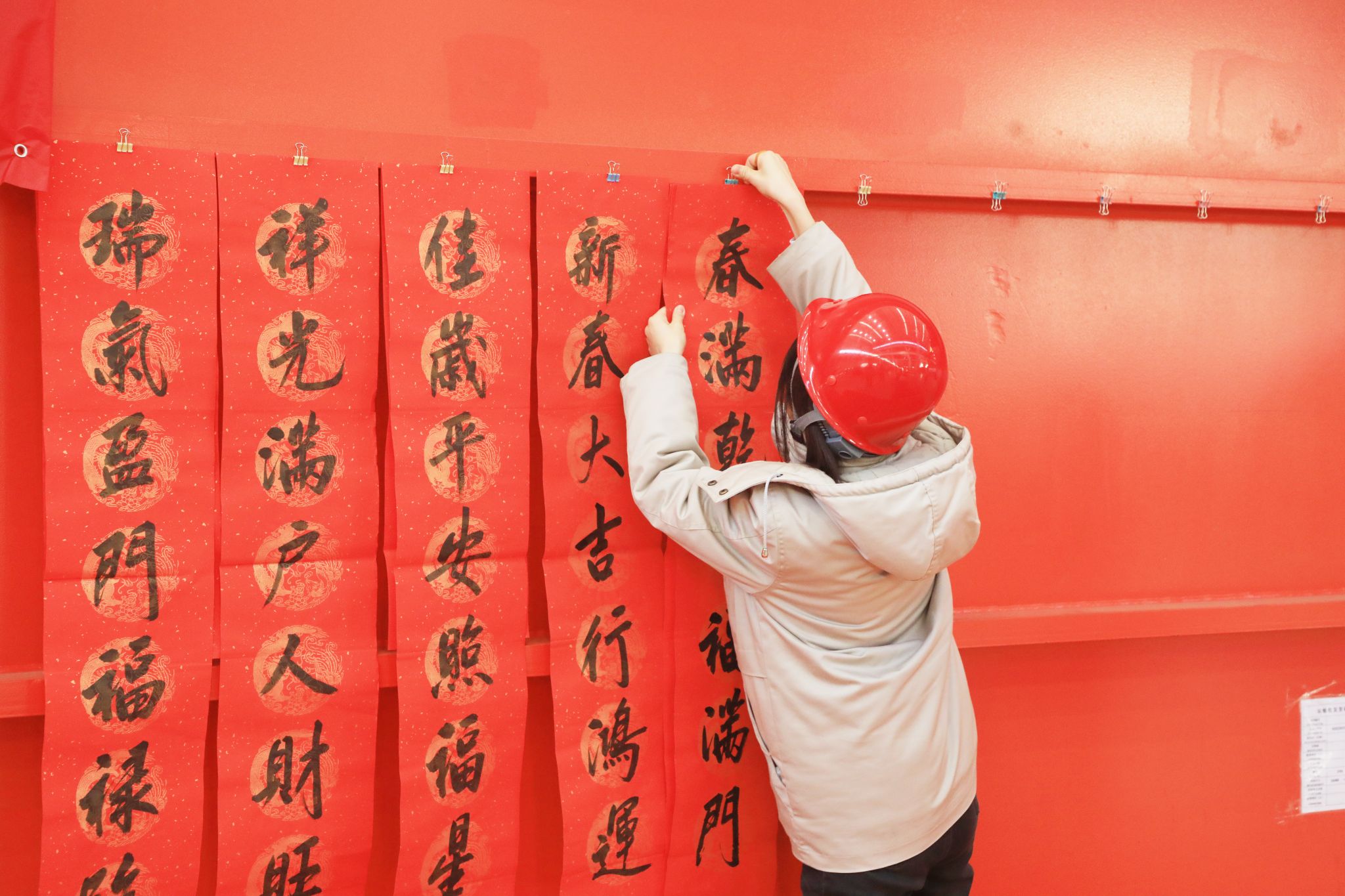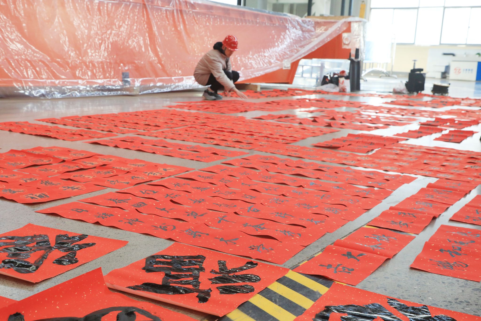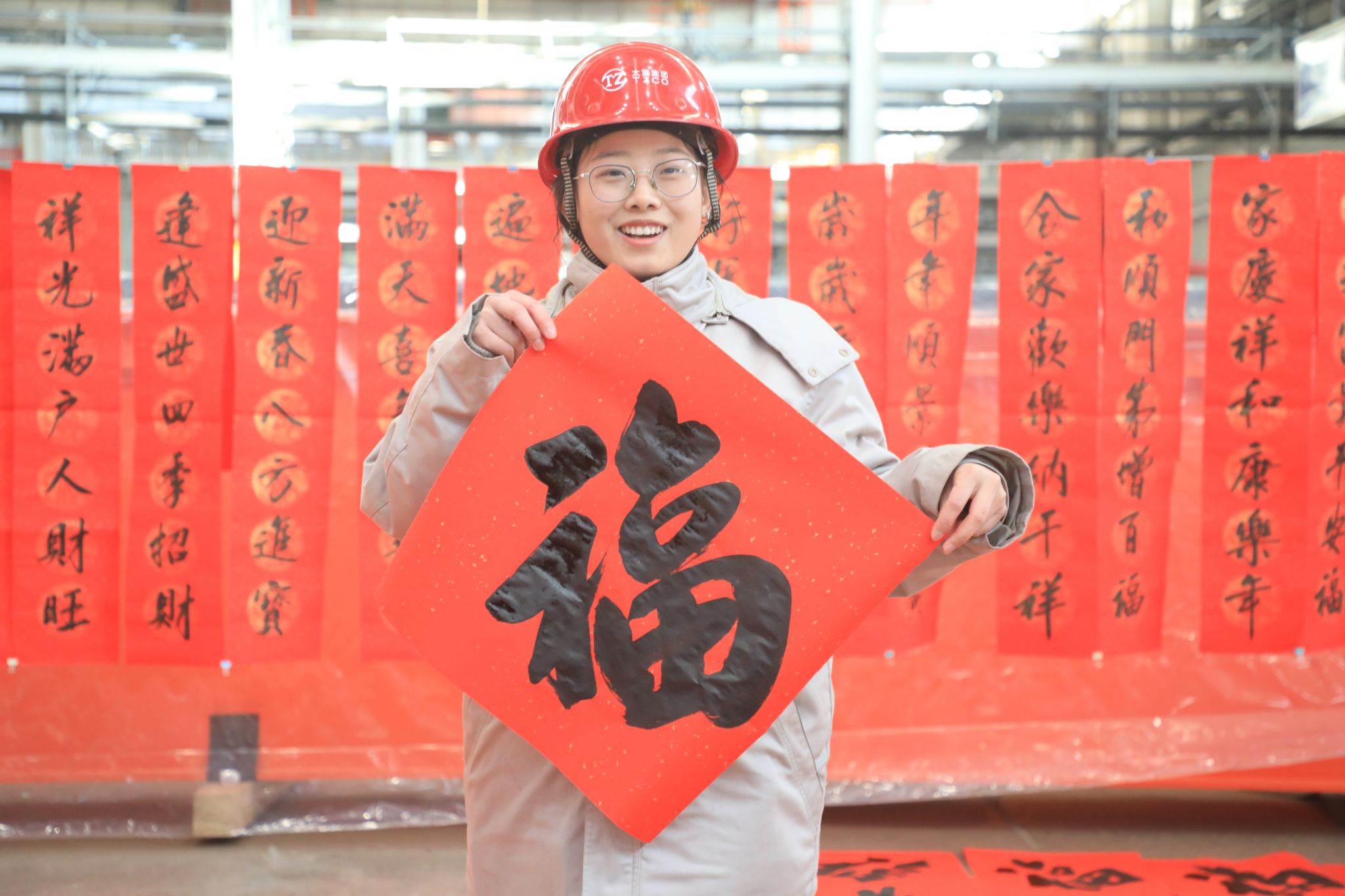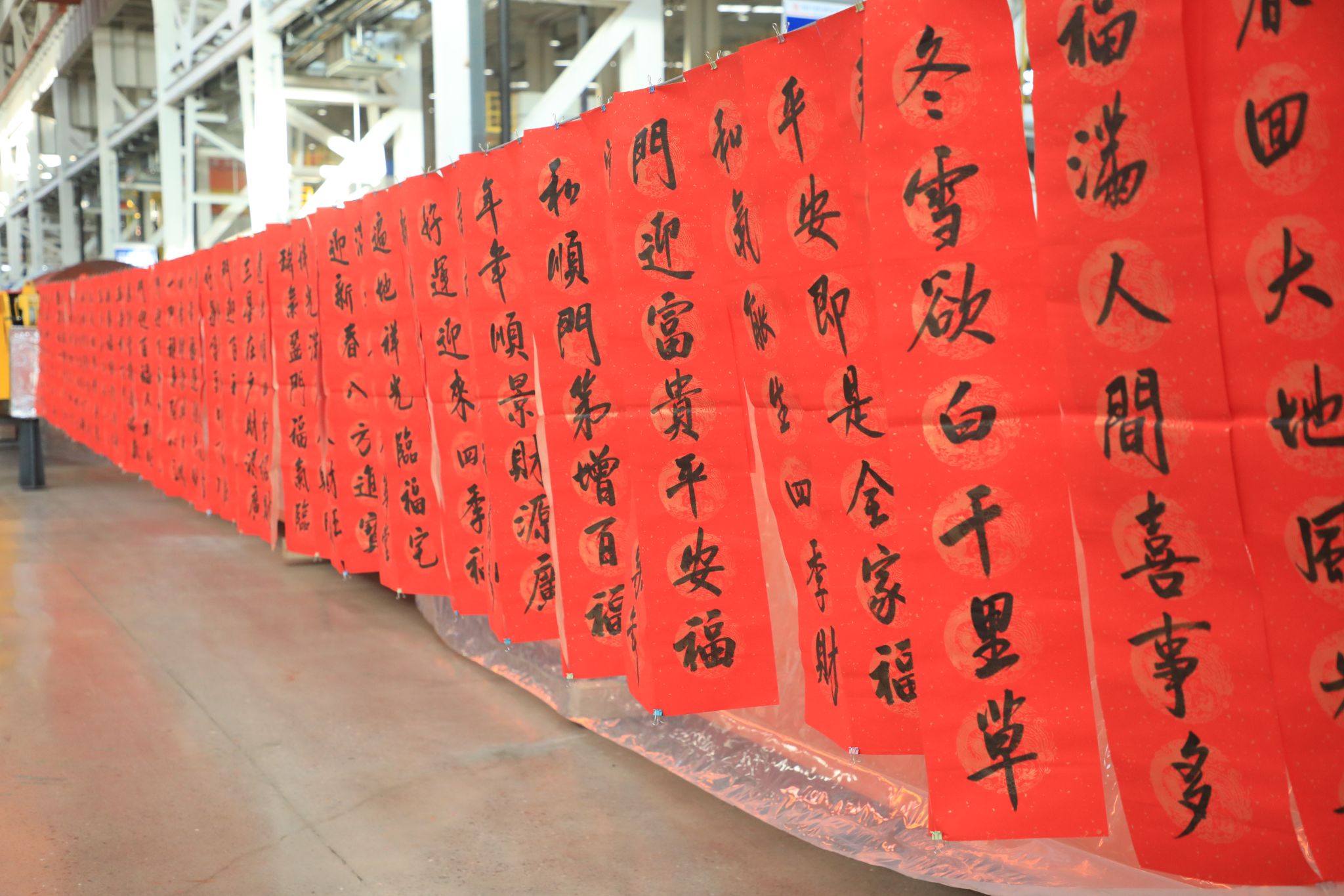 這些“福”氣滿滿的春聯(lián),充滿了對企業(yè)發(fā)展的美好期盼和對未來生活的無限憧憬,透著十足的年味,得到了職工們的熱烈稱贊。不一會兒功夫,桌上、地上就鋪滿了春聯(lián)和“?!弊?,好似一片喜慶的“紅地毯”?!袄蠋焸儸F(xiàn)場寫春聯(lián),與買春聯(lián)的感覺完全不同,這樣充滿儀式感的活動,讓大家的心里都暖融融的,來年要更加努力在自己的工作崗位上發(fā)光發(fā)熱!”職工們臉上洋溢著燦爛的笑容,開心無比。在現(xiàn)場,書法老師們共書寫春聯(lián)1000余副,并將這些蘊含著辛勤汗水、美好祝愿的春聯(lián)送到職工手中,大家紛紛拿起手機拍照留念,記錄下這幸福的瞬間。