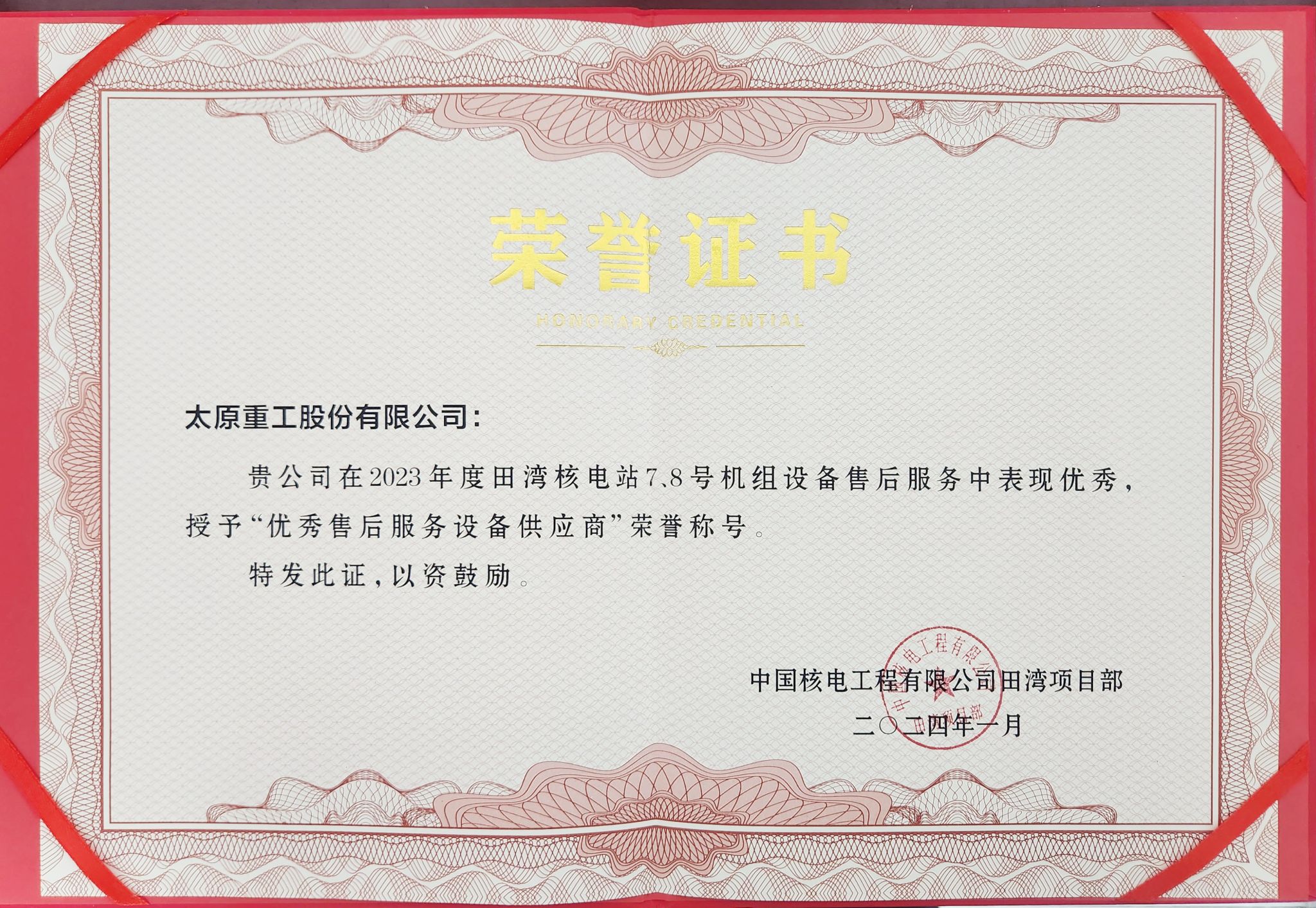 此次榮譽(yù)的獲得,既是雙方友好合作的見證,也是對(duì)未來加強(qiáng)合作的期待,是用戶對(duì)太重創(chuàng)新能力、產(chǎn)品質(zhì)量、現(xiàn)場(chǎng)服務(wù)及企業(yè)文化等多方面的肯定。新的一年,公司將繼續(xù)深入踐行“三精三致三效”理念,不斷提升產(chǎn)品性能、優(yōu)化服務(wù)質(zhì)量,提升公司在核電領(lǐng)域的影響力和美譽(yù)度,堅(jiān)決扛牢實(shí)現(xiàn)新型工業(yè)化這個(gè)關(guān)鍵任務(wù),為扎實(shí)推進(jìn)核工業(yè)高質(zhì)量發(fā)展貢獻(xiàn)太重力量!