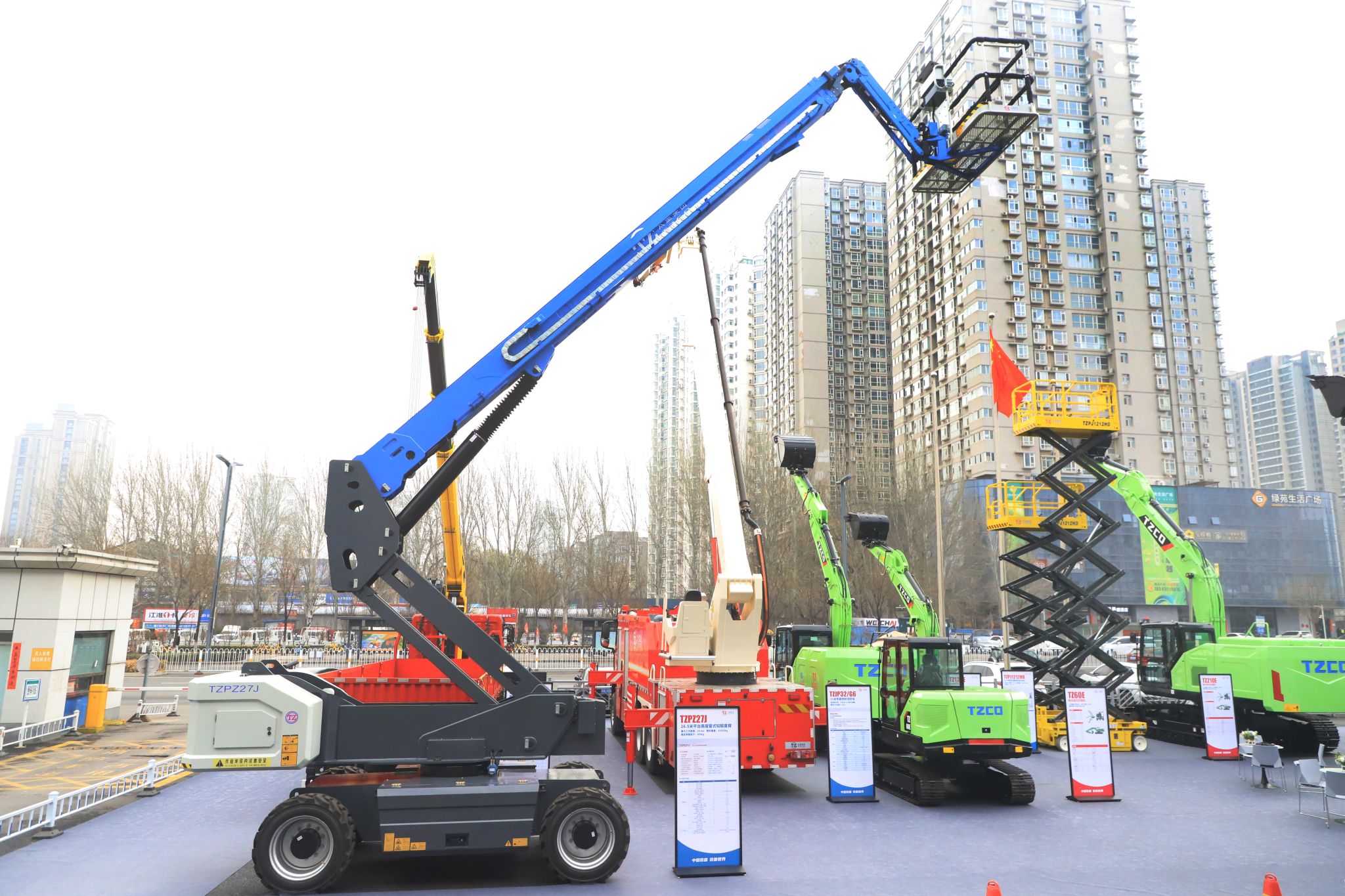 一朝春雨過,萬物皆清明。太重生產(chǎn)的液壓挖掘機、隨車起重機與高空作業(yè)平臺在場館外重磅亮相,成為全場焦點。