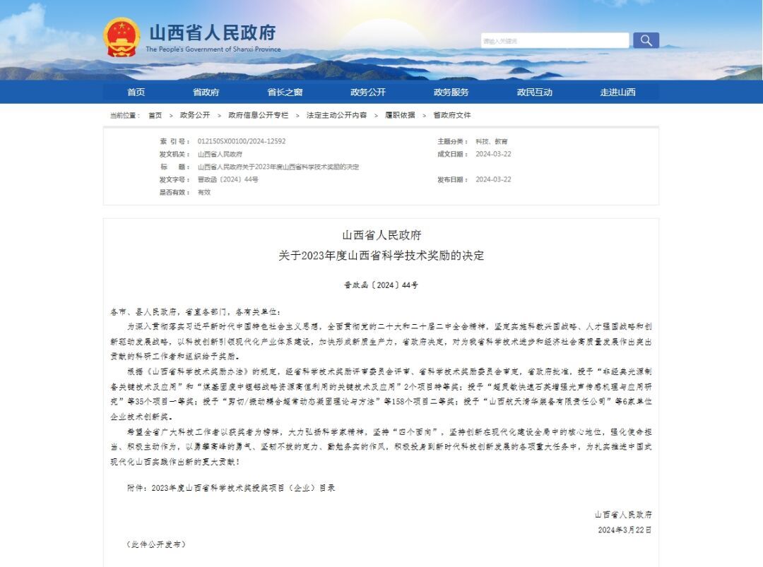 近日,山西省人民政府印發(fā)《關(guān)于2023年度山西省科學(xué)技術(shù)獎(jiǎng)勵(lì)的決定》,對(duì)促進(jìn)山西省科學(xué)技術(shù)進(jìn)步和經(jīng)濟(jì)社會(huì)發(fā)展作出突出貢獻(xiàn)的科學(xué)技術(shù)人員和組織給予獎(jiǎng)勵(lì)。太重集團(tuán)5項(xiàng)成果喜獲山西省科學(xué)技術(shù)獎(jiǎng)。太重向明榮獲企業(yè)技術(shù)創(chuàng)新獎(jiǎng)。