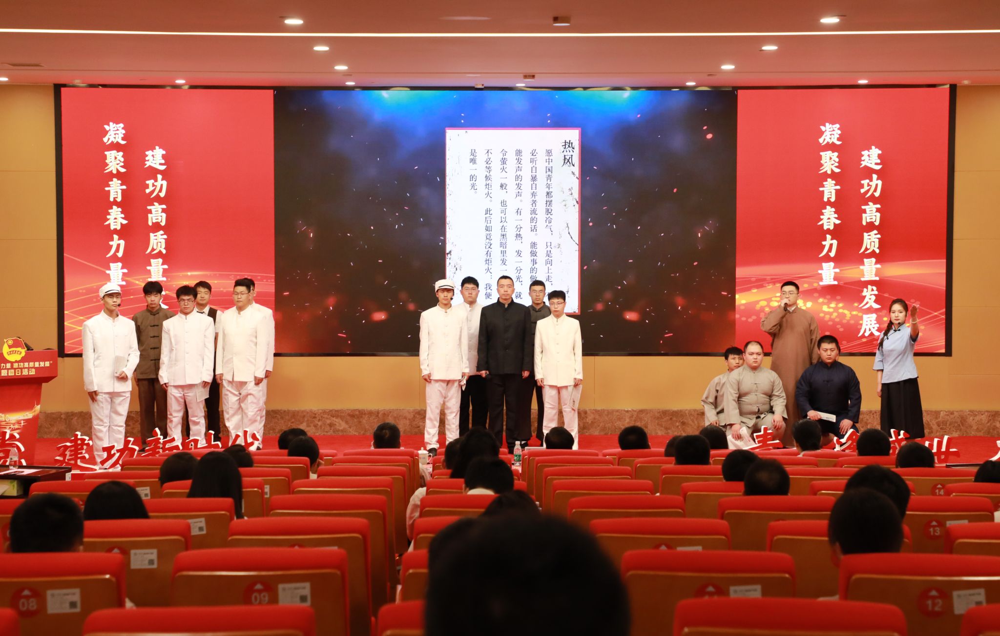 在“續(xù)寫時代華章”環(huán)節(jié),情景音詩畫《青春中國》為活動拉開序幕,或慷慨激昂、或娓娓道來,極富感染力的誦讀盡顯太重青年昂揚向上的斗志。隨后,“中華技能大獎”獲得者——太重職工樊志勤,分享了自己與神舟發(fā)射塔架之間的故事,以個人的點滴經(jīng)歷鼓勵團員青年逐夢前行,也展現(xiàn)出太重積極參與國家重大工程的奉獻與擔(dān)當(dāng)。