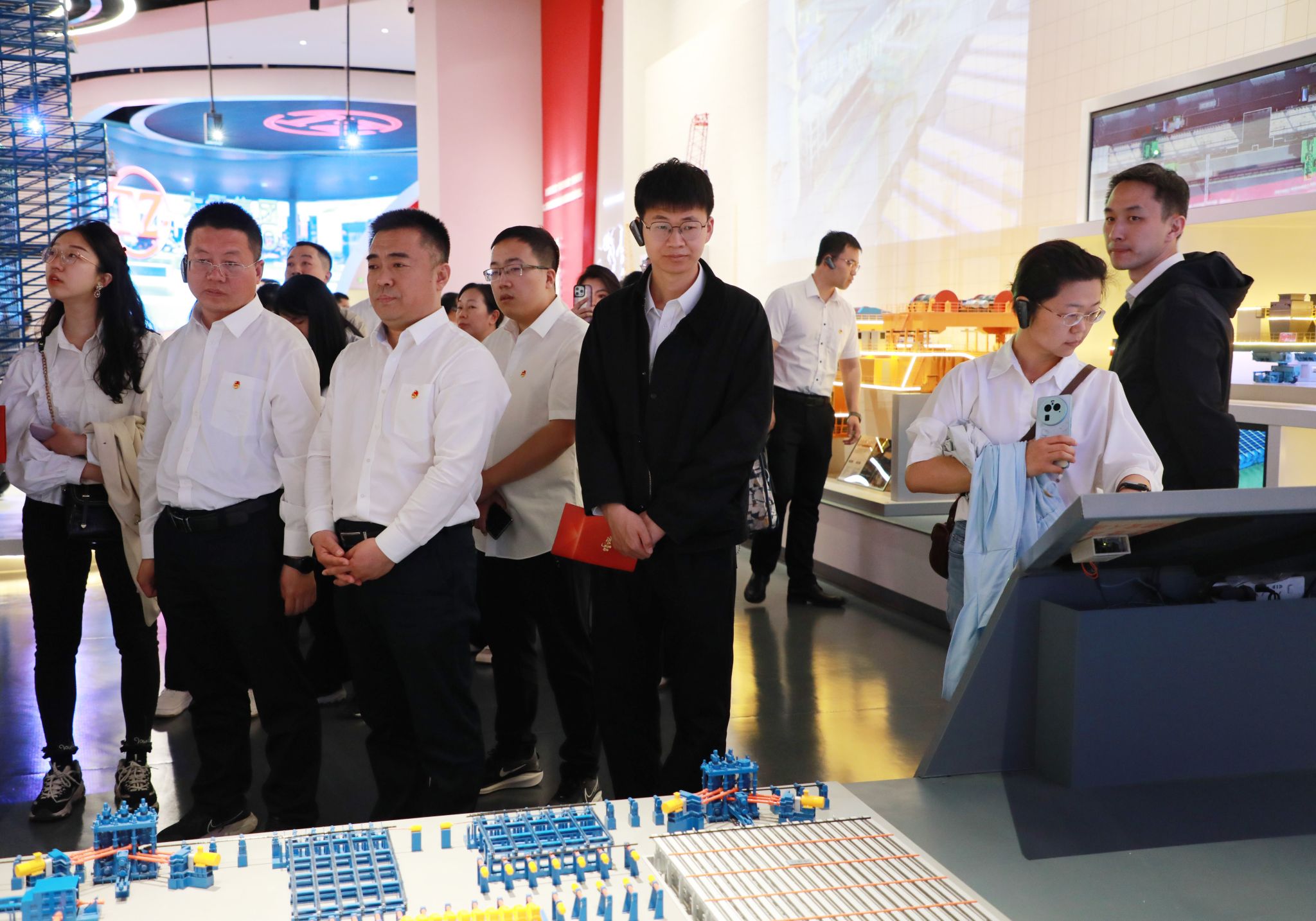 主題研學(xué)環(huán)節(jié),團員青年走進太重集團展覽中心,了解太重從創(chuàng)立之初到現(xiàn)在蓬勃發(fā)展的奮斗歷程,并體驗展廳內(nèi)數(shù)字化的演示設(shè)備,感受太重創(chuàng)新活力。“我們坐的動車就是用的這種車輪呀”“太重生產(chǎn)的裝備是當(dāng)之無愧的國之重器”“原來設(shè)計一臺專屬定制的起重機這么快”……大家邊看邊聽邊討論。