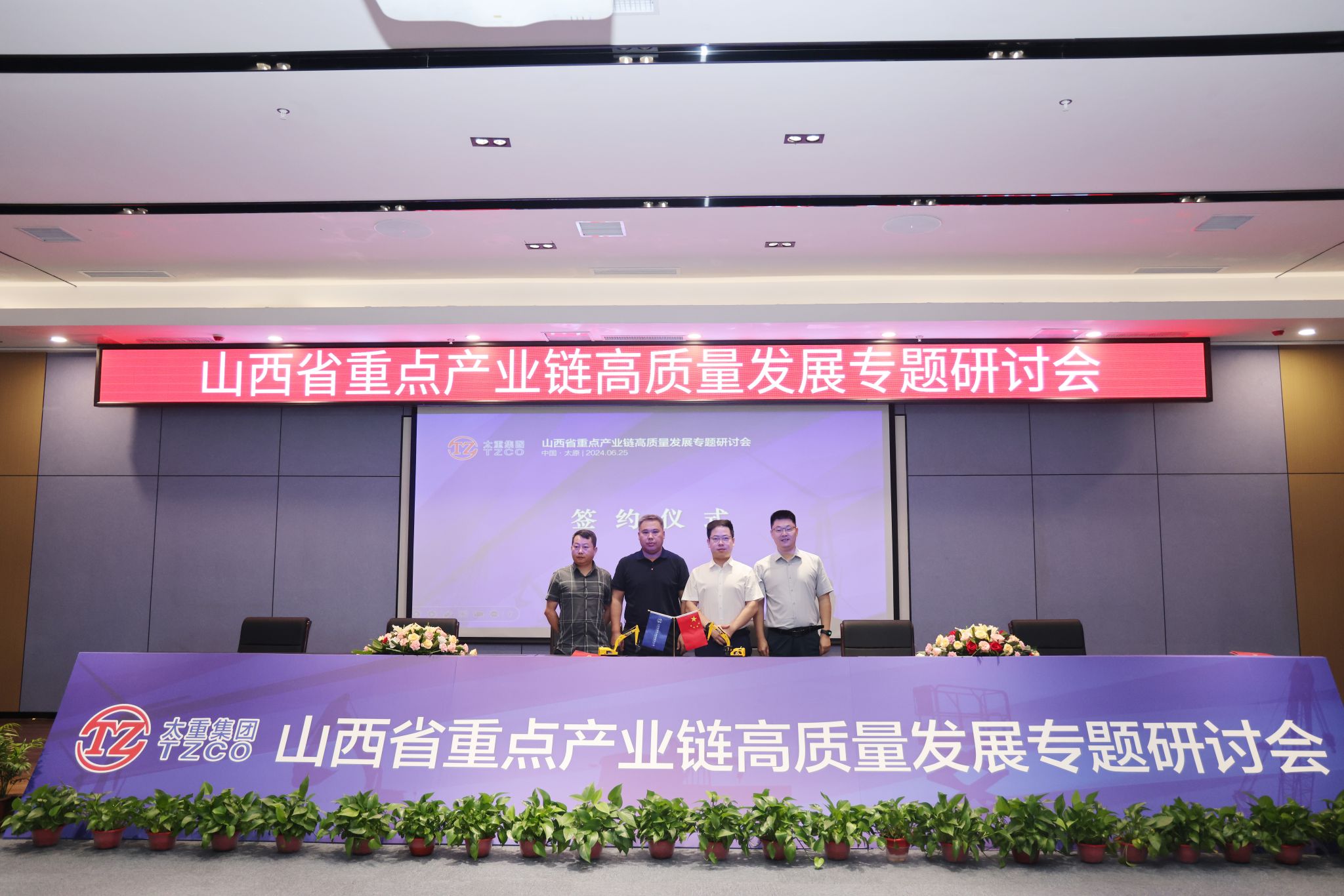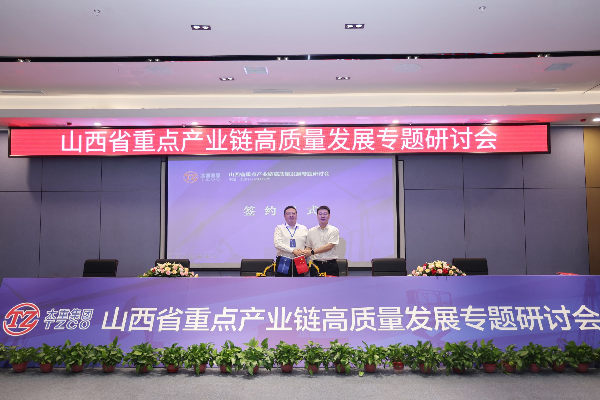 省工信廳一級巡視員張占祥,省能源局二級巡視員楊仁澤,山西轉(zhuǎn)型綜改示范區(qū)黨工委委員、管委會副主任陳曦及相關(guān)單位負責(zé)人參加會議。集團公司黨委副書記、副董事長、總經(jīng)理陶家晉,副總經(jīng)理韓肖重參加會議。2022年5月27日,太重被授予全省高端裝備制造產(chǎn)業(yè)和風(fēng)電裝備產(chǎn)業(yè)鏈“鏈主”企業(yè)。兩年多來,太重勇?lián)半p鏈主”企業(yè)使命責(zé)任,不斷強鏈、補鏈、延鏈,進一步強化鏈上企業(yè)之間的良性互動,積極引入頭部企業(yè)入晉開展戰(zhàn)略合作,“雙鏈主”龍頭作用持續(xù)顯現(xiàn),引領(lǐng)帶動全省裝備制造業(yè)實現(xiàn)高質(zhì)量發(fā)展。張占祥對會議的召開表示熱烈祝賀,提出三點建議。要把握大勢,搶抓機遇,做大做強裝備制造業(yè)。依托山西省高端裝備制造(工程機械)產(chǎn)業(yè)聯(lián)盟和風(fēng)電裝備產(chǎn)業(yè)聯(lián)盟,不斷加強優(yōu)勢互補,共同打造雙千億級產(chǎn)業(yè)鏈。要充分發(fā)揮“政府+鏈主+園區(qū)”招商合力,結(jié)合產(chǎn)業(yè)布局規(guī)劃,精準(zhǔn)鎖定招商目標(biāo),力爭在上中游環(huán)節(jié)補齊短板。要創(chuàng)新驅(qū)動,做到技高一籌,搶占戰(zhàn)略制高點,帶動產(chǎn)業(yè)鏈整體競爭力不斷提升。政府部門和企業(yè)要加強合作、凝心聚力、共謀發(fā)展,努力使工程機械產(chǎn)業(yè)和風(fēng)電產(chǎn)業(yè)成為推動我省工業(yè)高質(zhì)量發(fā)展、奮進“兩個基本實現(xiàn)”目標(biāo)的成長性產(chǎn)業(yè)。楊仁澤認(rèn)為本次研討會接地氣、重實效,他表示,各有關(guān)企業(yè)要緊抓政策機遇、市場機遇,推動產(chǎn)業(yè)鏈做大做強。要深化協(xié)作,推動產(chǎn)業(yè)鏈集群化發(fā)展,在供應(yīng)鏈、創(chuàng)新鏈、人才鏈上創(chuàng)新合作模式,形成你中有我、我中有你的命運共同體。要強鏈補鏈,提升產(chǎn)業(yè)鏈綜合競爭力,吸引外部優(yōu)秀企業(yè)來晉投資設(shè)廠,省能源局也將積極做好服務(wù),幫助企業(yè)用好用足支持政策,持續(xù)構(gòu)建更加完整的產(chǎn)業(yè)體系。陳曦向各位嘉賓表示熱烈歡迎,對實現(xiàn)綜改區(qū)全方位轉(zhuǎn)型、高質(zhì)量發(fā)展提出三點希望。一是強化服務(wù),吸引產(chǎn)業(yè)鏈企業(yè)入駐。充分發(fā)揮綜改區(qū)全省轉(zhuǎn)型發(fā)展的排頭兵作用,強化“政府-企業(yè)-聯(lián)盟”良性互動,創(chuàng)優(yōu)營商環(huán)境,讓企業(yè)愿意來、留得住、能發(fā)展。二是強化創(chuàng)新,突破產(chǎn)業(yè)鏈核心技術(shù)。發(fā)揮產(chǎn)業(yè)聯(lián)盟牽頭作用,突破一批關(guān)鍵核心技術(shù),堅定不移把產(chǎn)業(yè)鏈做強做優(yōu)做大。三是深化合作,實現(xiàn)產(chǎn)業(yè)鏈共建共贏。綜改區(qū)將發(fā)揮主戰(zhàn)場主引擎作用,在政策引導(dǎo)、資金投入、市場開拓、要素保障,協(xié)調(diào)服務(wù)等方面提供支持和服務(wù),為我省制造業(yè)振興升級貢獻力量。陶家晉指出,此次研討會建立了一個開放的平臺,讓更多的企業(yè)家認(rèn)識太重、了解太重,通過這個平臺,全面深入與太重合作。未來,太重將聚焦推進新型工業(yè)化關(guān)鍵任務(wù),充分發(fā)揮“雙鏈主”作用,努力建設(shè)具有國際一流競爭力的現(xiàn)代智能裝備制造企業(yè),爭當(dāng)建設(shè)現(xiàn)代新國企的踐行者、推進新型工業(yè)化的主力軍、發(fā)展新質(zhì)生產(chǎn)力的排頭兵、實現(xiàn)中國式現(xiàn)代化的貢獻者。
