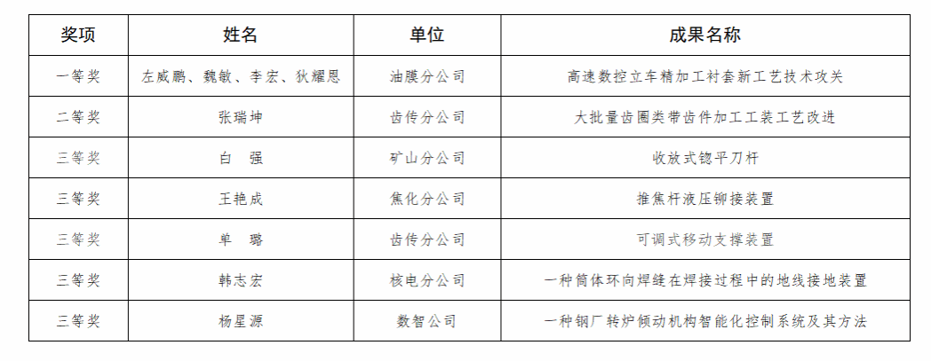 近日,2024年全國(guó)機(jī)械冶金建材行業(yè)職工技術(shù)創(chuàng)新成果獎(jiǎng)?wù)焦迹丶瘓F(tuán)7項(xiàng)成果獲獎(jiǎng),包括一等獎(jiǎng)1項(xiàng)、二等獎(jiǎng)1項(xiàng)、三等獎(jiǎng)5項(xiàng),再次彰顯了公司近年來(lái)科技創(chuàng)新取得的突出成績(jī)。