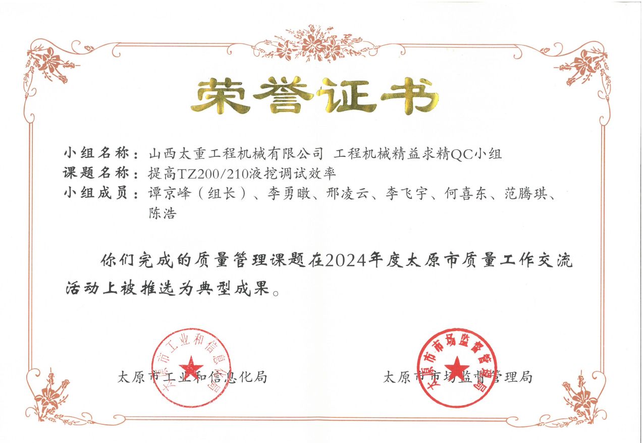 QC活動(dòng)的開(kāi)展,不僅是激發(fā)項(xiàng)目一線創(chuàng)新活力的有效途徑,也是推動(dòng)全員參與質(zhì)量改進(jìn)的重要手段。此次獲獎(jiǎng)不僅是對(duì)公司在質(zhì)量管理領(lǐng)域持續(xù)創(chuàng)新的高度認(rèn)可,也是對(duì)公司長(zhǎng)期以來(lái)人才培養(yǎng)與體系構(gòu)建取得成效的見(jiàn)證。近年來(lái),公司高度重視質(zhì)量管理工作,緊緊圍繞產(chǎn)品質(zhì)量提升,持續(xù)擴(kuò)展QC活動(dòng)領(lǐng)域,推動(dòng)公司質(zhì)量管理水平不斷提高。系統(tǒng)組織實(shí)施六西格瑪、PDCA、QC等先進(jìn)工具專題培訓(xùn),并融入質(zhì)量問(wèn)題的分析處理,確保產(chǎn)品改進(jìn)取得實(shí)效;依托QMS信息化建設(shè),從基礎(chǔ)憑證、工作臺(tái)賬、指標(biāo)管理到統(tǒng)計(jì)報(bào)表,全面建立“日填報(bào)、周統(tǒng)計(jì)、月匯總”的質(zhì)量指標(biāo)統(tǒng)計(jì)和反饋體系……公司依托先進(jìn)工具和信息系統(tǒng)持續(xù)推進(jìn)全過(guò)程質(zhì)量管控,全力打造太重標(biāo)準(zhǔn)、太重質(zhì)量、太重品牌。下一步,公司將繼續(xù)推進(jìn)六西格瑪、QC等項(xiàng)目成果建設(shè),爭(zhēng)取挖掘更多優(yōu)質(zhì)項(xiàng)目,為發(fā)展新質(zhì)生產(chǎn)力貢獻(xiàn)更多“太重精品”。