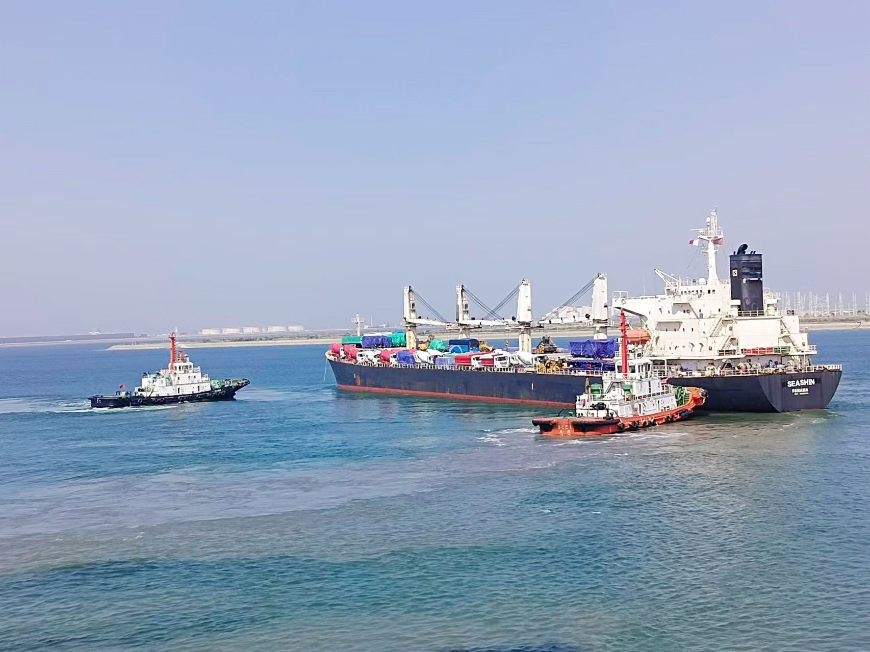 該貨輪是太重碼頭今年以來(lái)ADP航線的第8條船舶,裝船貨物除了以往傳統(tǒng)的卷鋼、噸袋、鋼材外,還有近1萬(wàn)方批量客車、工程車等新類型車輛,均為高附加值貨物。接到集港裝船任務(wù)后,濱海公司積極對(duì)接用戶,溝通船舶公司,提前了解此次裝船貨類和船舶配載的特性,科學(xué)籌劃船舶靠港、作業(yè)人員、場(chǎng)地布置、車輛擺放等重點(diǎn)環(huán)節(jié),為安全高效作業(yè)打下堅(jiān)實(shí)基礎(chǔ)。
