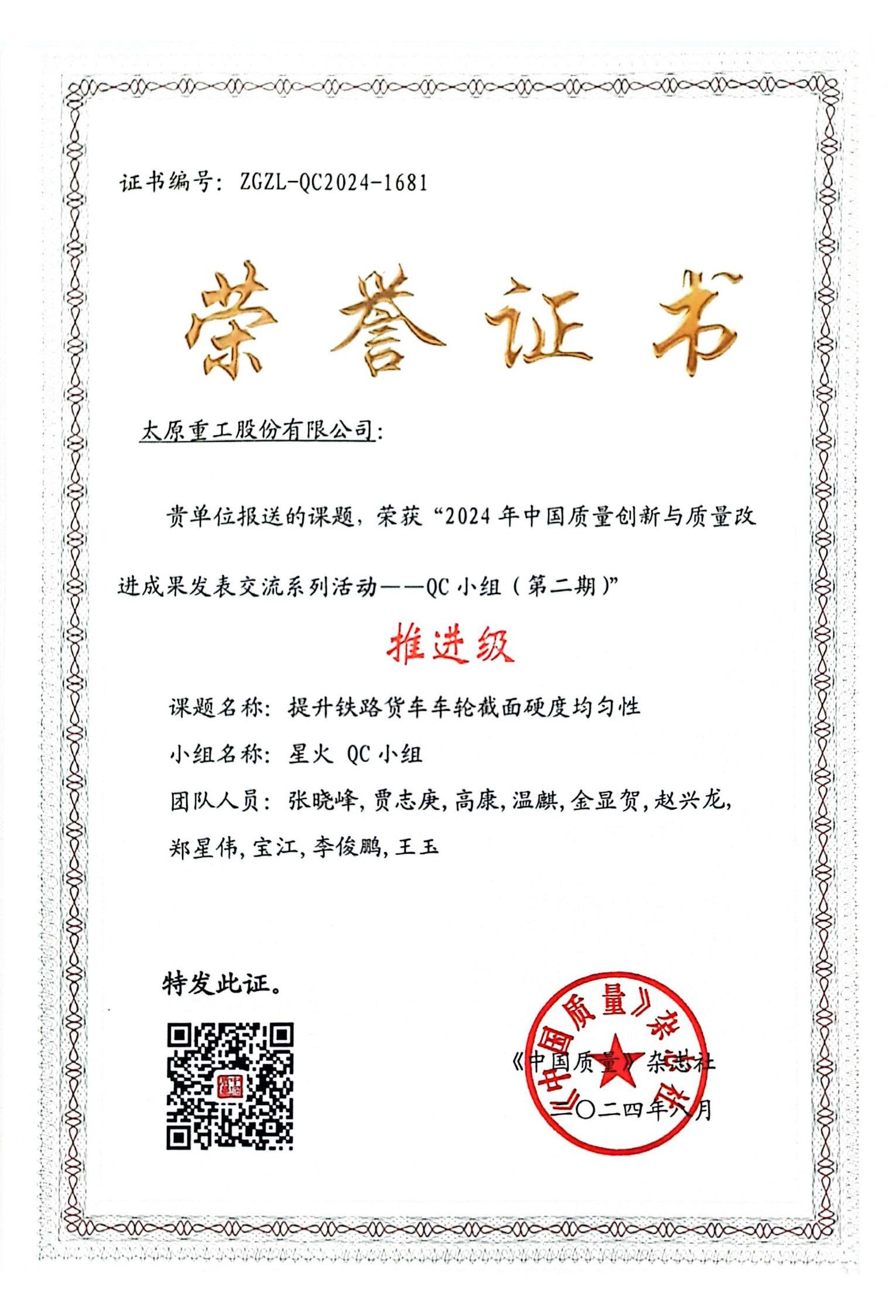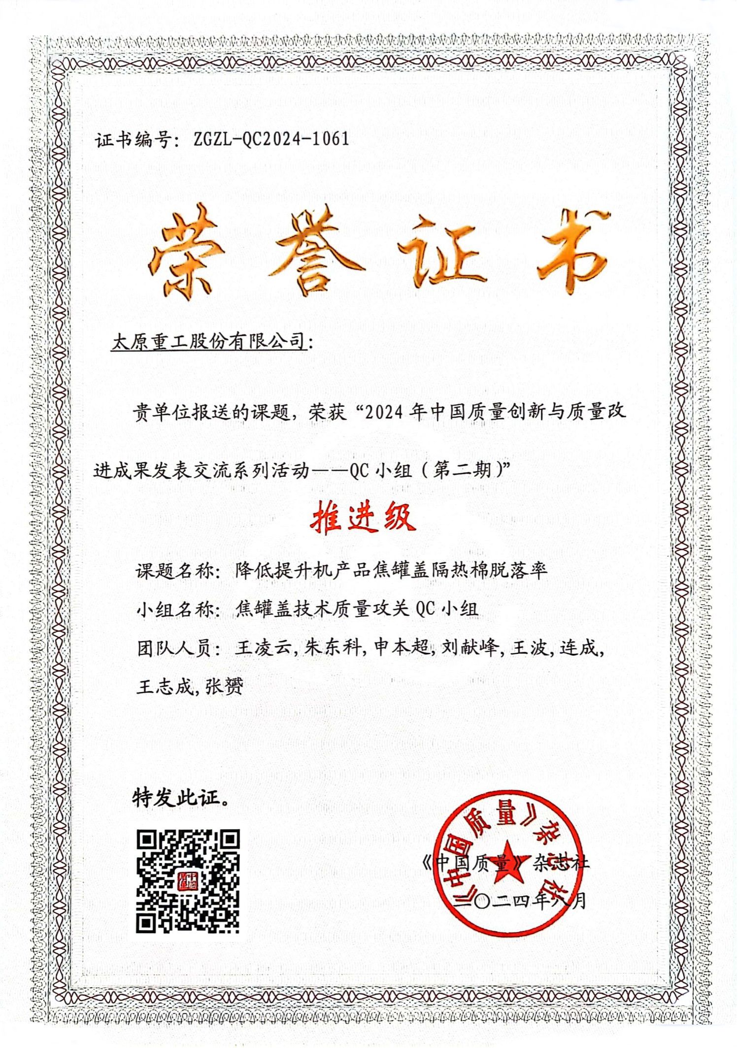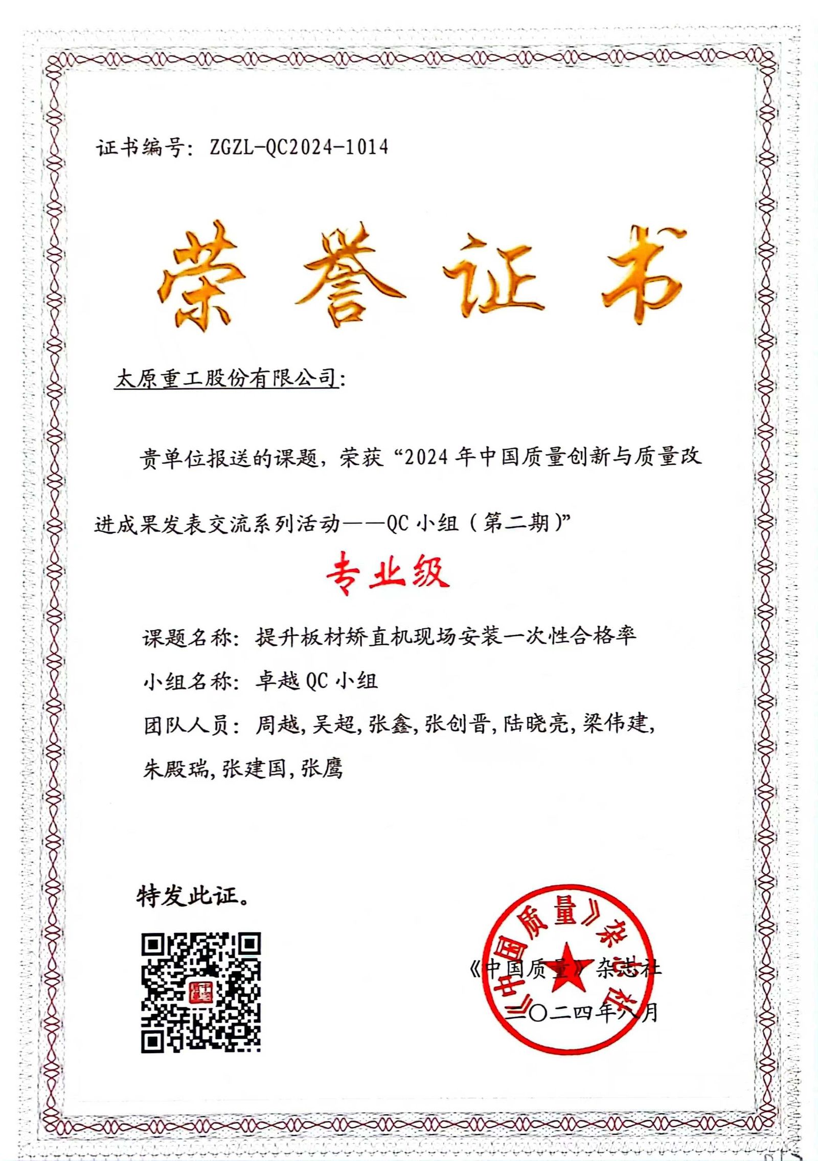 成績(jī)肯定過(guò)去,未來(lái)任重道遠(yuǎn)。公司將以本次獲獎(jiǎng)為契機(jī),再接再厲推動(dòng)質(zhì)量創(chuàng)新,依托先進(jìn)質(zhì)量工具和信息系統(tǒng),持續(xù)推進(jìn)全過(guò)程質(zhì)量管控,塑造追求卓越的質(zhì)量管理體系,全力打造太重標(biāo)準(zhǔn)、太重質(zhì)量、太重品牌,為加快培育和發(fā)展新質(zhì)生產(chǎn)力、推進(jìn)新型工業(yè)化貢獻(xiàn)更多“太重精品”。