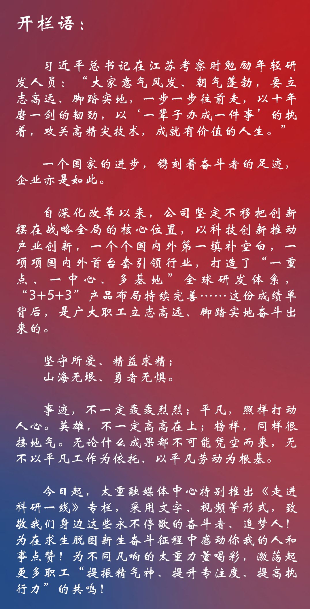 從紛繁復(fù)雜的千張圖紙到風(fēng)雨無懼的考察調(diào)研,從歷經(jīng)艱辛的一線調(diào)試到用戶至上的太重速度,從以身作則的榜樣引領(lǐng)到潛移默化的示范影響,他們用一個個鮮活生動的小故事,詮釋了一線研發(fā)設(shè)計人員的堅守和不易。記者深深地感受到,這樣一支充滿無限奮斗的研發(fā)團(tuán)隊,不僅擁有強大的凝聚力和向心力,還擁有逐綠追新的魄力和擔(dān)當(dāng)。下面,就讓我們跟隨記者的鏡頭走進(jìn)上海研發(fā)團(tuán)隊的奮斗故事。