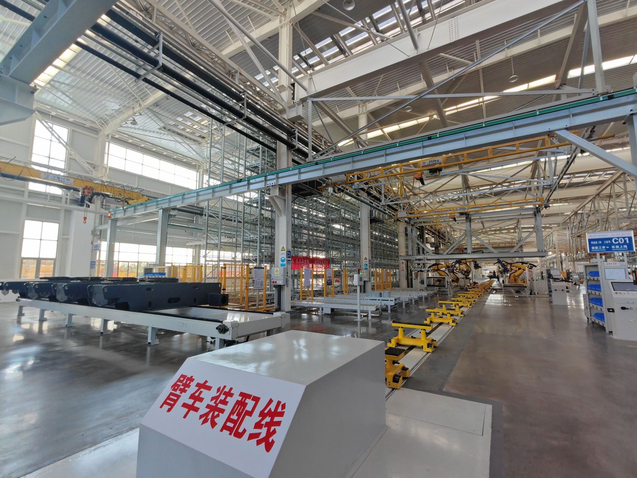 “在前期對(duì)標(biāo)過程中,我們發(fā)現(xiàn)許多廠房將立庫與產(chǎn)線分開設(shè)計(jì),然后通過AGV小車轉(zhuǎn)運(yùn),這種布局的弊端就是物料配送距離長(zhǎng),運(yùn)輸占用面積大,空間浪費(fèi)較為嚴(yán)重。”公司高機(jī)生產(chǎn)線項(xiàng)目團(tuán)隊(duì)在建設(shè)籌備時(shí)就捕捉到了關(guān)鍵,為解決這一問題,攻堅(jiān)小組進(jìn)行廣泛調(diào)研,大膽確定了立體庫與自動(dòng)化流水線相結(jié)合的解決方案,想法落地、產(chǎn)線達(dá)產(chǎn),太重再一次用事實(shí)證明我們大膽創(chuàng)新的又一“國內(nèi)首條”立得住、行得通、效果好。