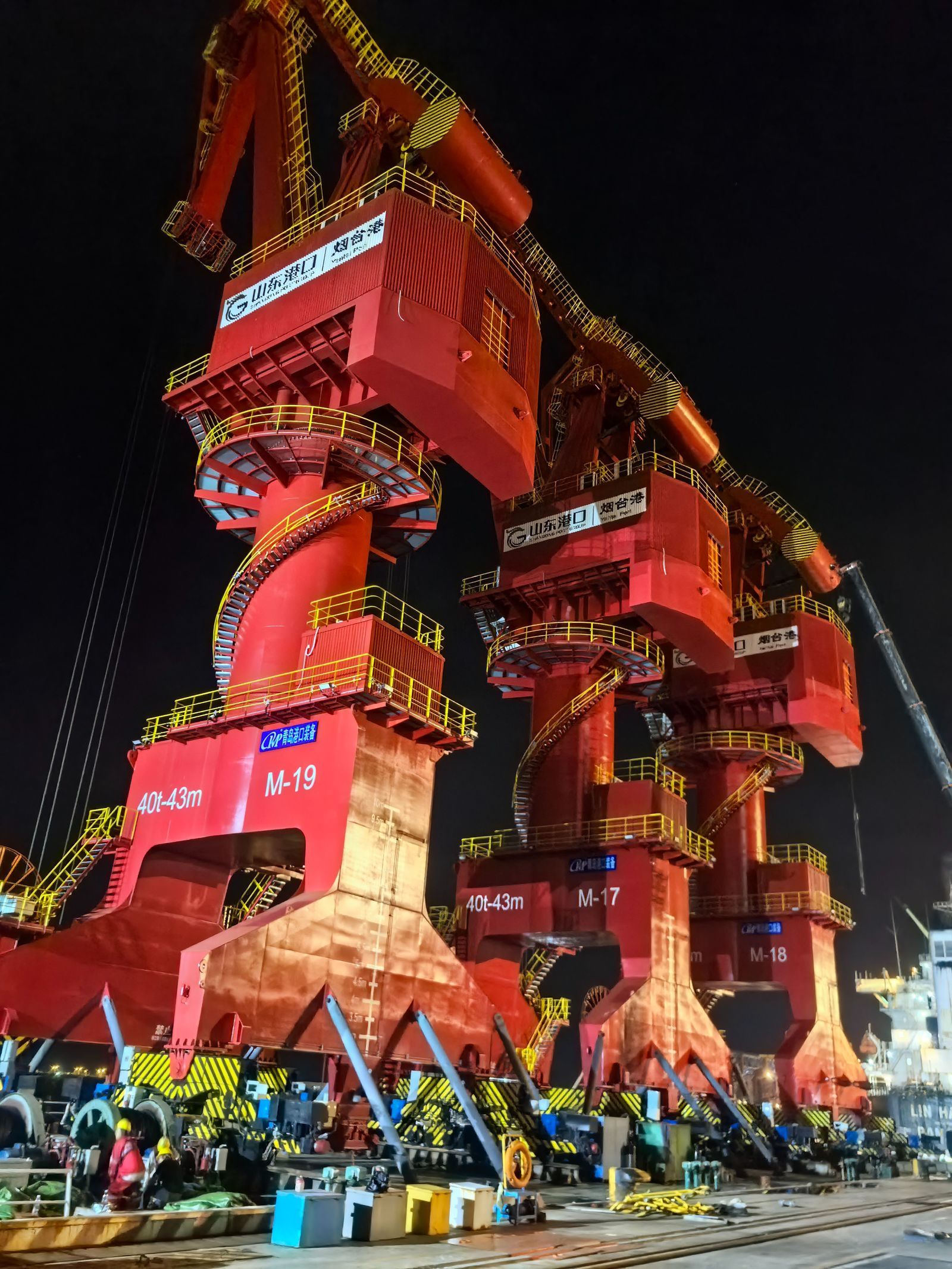 原來是三臺門座式起重機正在滾裝上船