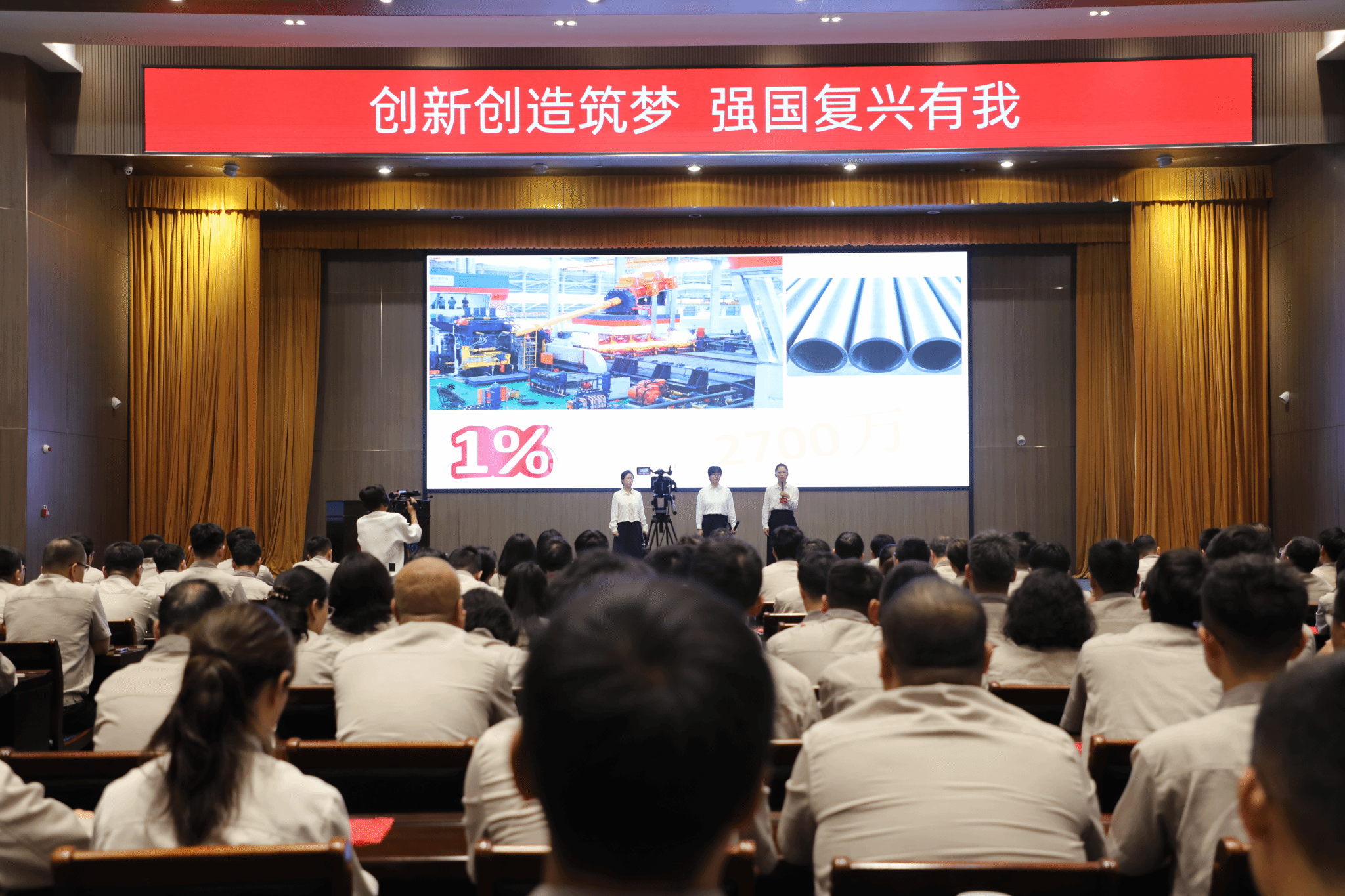 我是來自技術(shù)中心的裴丁璞。黨的二十屆三中全會把科技創(chuàng)新放置于前所未有的突出位置,中國式現(xiàn)代化關(guān)鍵在科技現(xiàn)代化。在今年全國科技大會上,習(xí)近平總書記勉勵科技工作者,要以“十年磨一劍”的堅定決心和頑強意志,只爭朝夕、埋頭苦干,一步一個腳印把科技強國這一戰(zhàn)略目標(biāo)變?yōu)楝F(xiàn)實。憶往昔,錢學(xué)森長空鑄劍,用蒼茫大漠點綴了蘑菇云的硝煙,護(hù)佑祖國千秋萬代;看今朝,袁隆平稻田筑夢,用一粒種子維護(hù)了全球糧食安全,燭照后人前行之路!在我們技術(shù)中心,有這樣一支最強女團(tuán),她們整日與“鋼鐵猛獸”相伴,在軋鋼技術(shù)的最前沿不斷探索、矢志創(chuàng)新,用實際行動詮釋了“科技強國”的深刻內(nèi)涵,被大家稱為“三劍客”,她們就是郝志紅、石媚杰、張力。今天,她們想以工程師的視角講講自己眼中的科技創(chuàng)新。