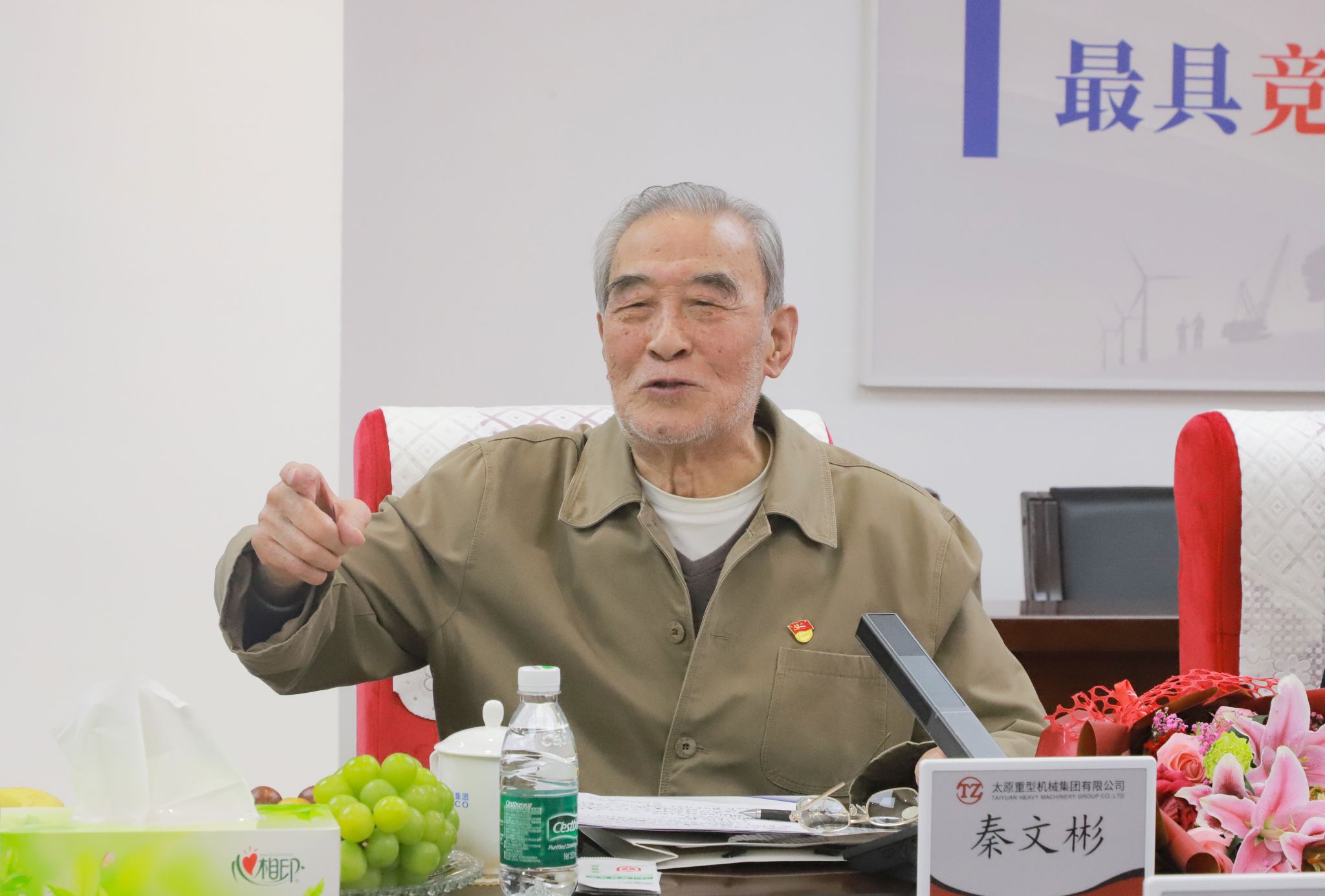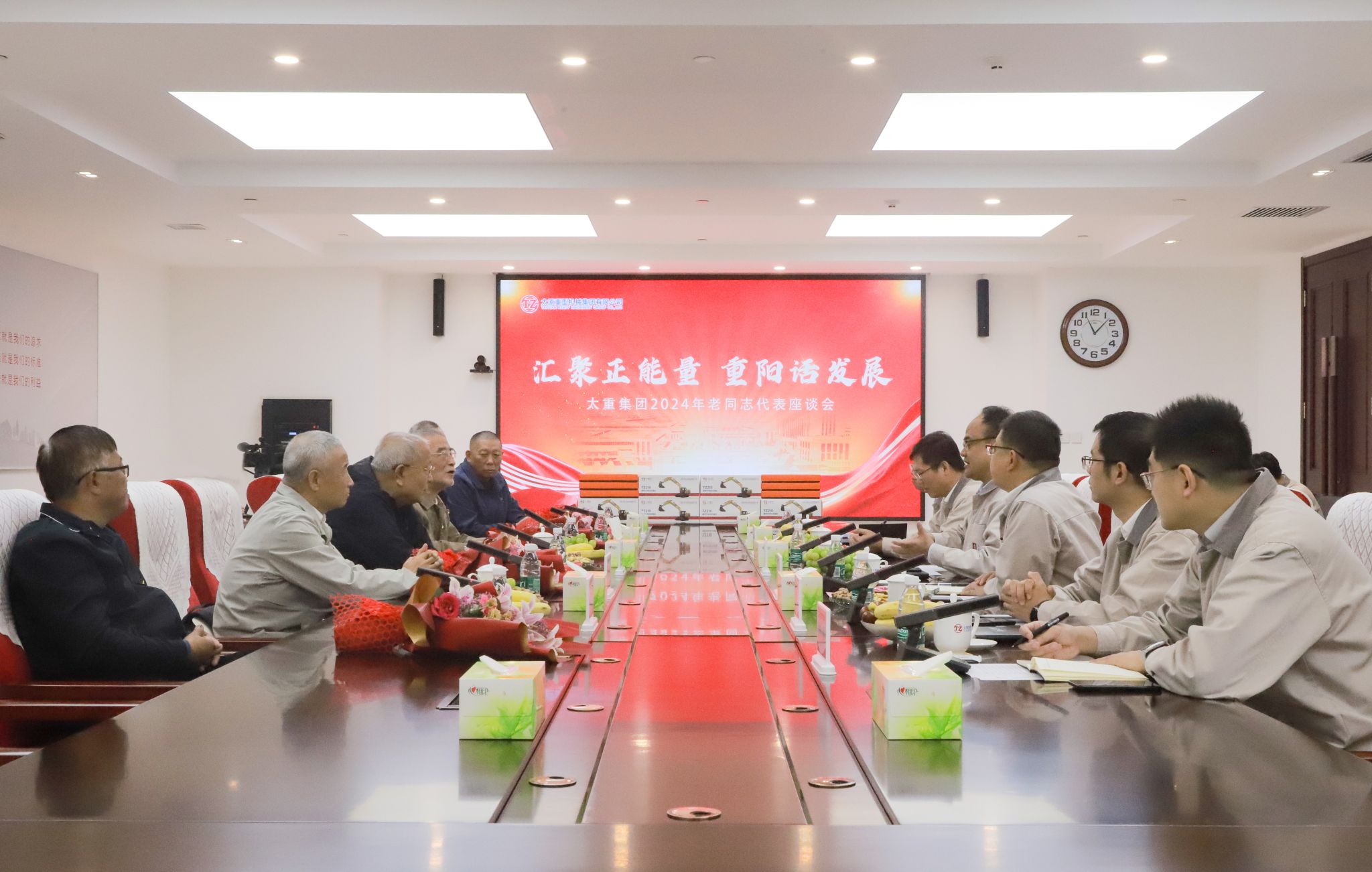 上午十時(shí),老同志們來到集團(tuán)總部,公司職工代表為他們送上鮮花。參加此次座談會(huì)的“老太重們”,盡管年齡最長(zhǎng)的已逾九旬,但那份對(duì)太重的熱愛與忠誠(chéng),卻如青春般熾熱未減。