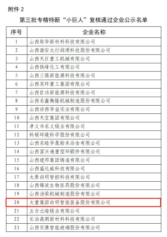 太原重工軌道交通設(shè)備有限公司成功入選第六批專精特新“小巨人”企業(yè),這是軌道公司繼2022年入選山西省專精特新企業(yè)后,完成的又一次榮譽(yù)進(jìn)階。如果說“燈塔工廠”是行業(yè)標(biāo)桿引領(lǐng),那這份來自國家級(jí)的認(rèn)可同樣分量十足。此外,在此次的名單中,太重集團(tuán)向明智能裝備股份有限公司順利通過第三批專精特新“小巨人”企業(yè)復(fù)核。