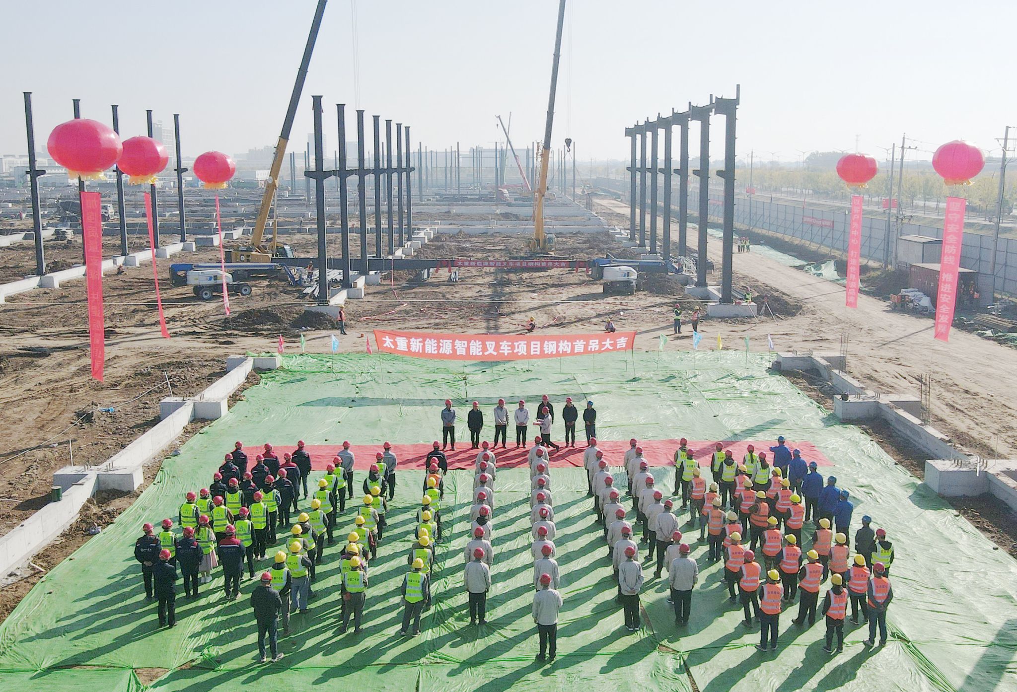 今年8月19日,全省開發(fā)區(qū)“三個一批”活動在太重叉車項目舉行,正式拉開項目建設(shè)序幕;今天,第一根鋼梁起吊,現(xiàn)代化廠房即將拔地而起。集團(tuán)公司黨委書記、董事長韓珍堂到現(xiàn)場調(diào)研時指出,叉車項目建設(shè)要再鼓一把勁、再添一把力、再上一層樓!全體項目建設(shè)者將瞄準(zhǔn)“兩個100天”既定目標(biāo),確保年底完成鋼結(jié)構(gòu)主體、廠房封閉,確保明年春天完成地面硬化、設(shè)備進(jìn)廠調(diào)試試生產(chǎn),全力以赴,早日將項目打造成為全球最具競爭力的新能源叉車智能制造基地。