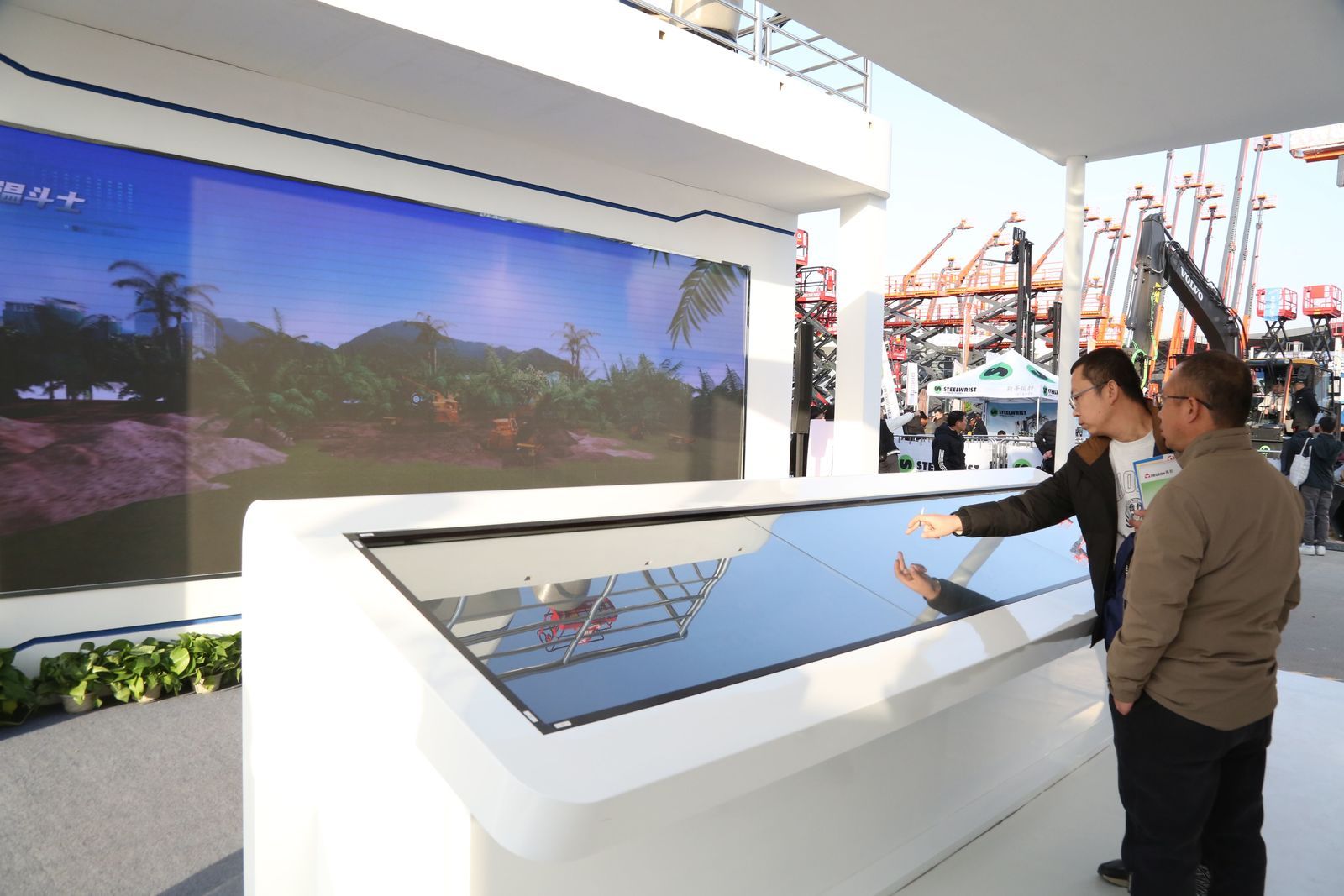 展區(qū)內(nèi),太重全工況“一攬子”解決方案的互動長屏成為焦點,讓參觀者身臨其境般從北極冰原到熱帶雨林、從高樓城市至世界屋脊,感受獨一無二的太重解決方案,獨具趣味的展示方式,令此處的參觀者絡繹不絕?!按舜位悠馏w驗,完全打破了我對礦山裝備的刻板印象,太重原來這么厲害!”一位參觀者將互動屏上的各個場景全部體驗了一遍。