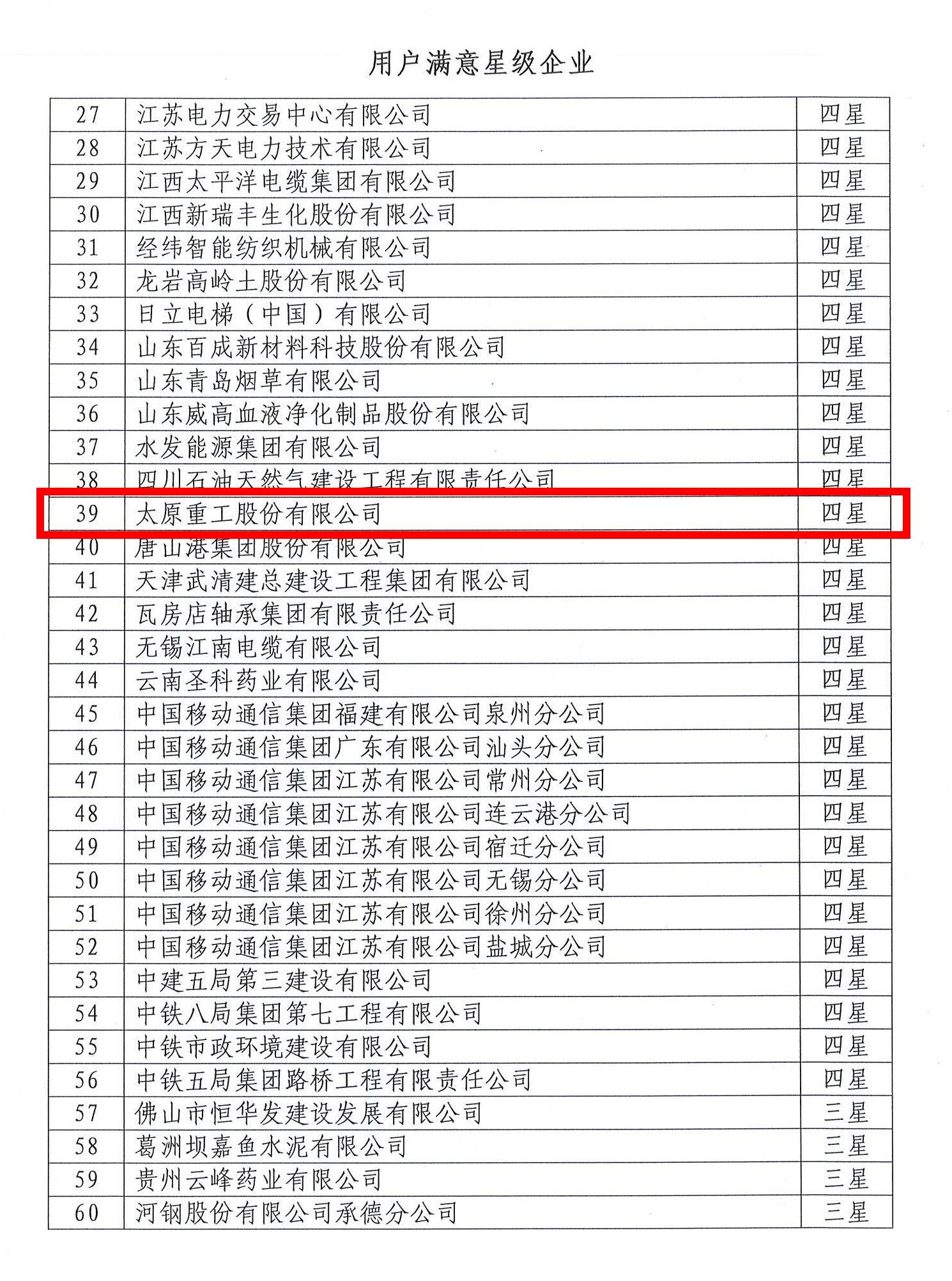 獲“用戶滿意星級企業(yè)”四星級評定