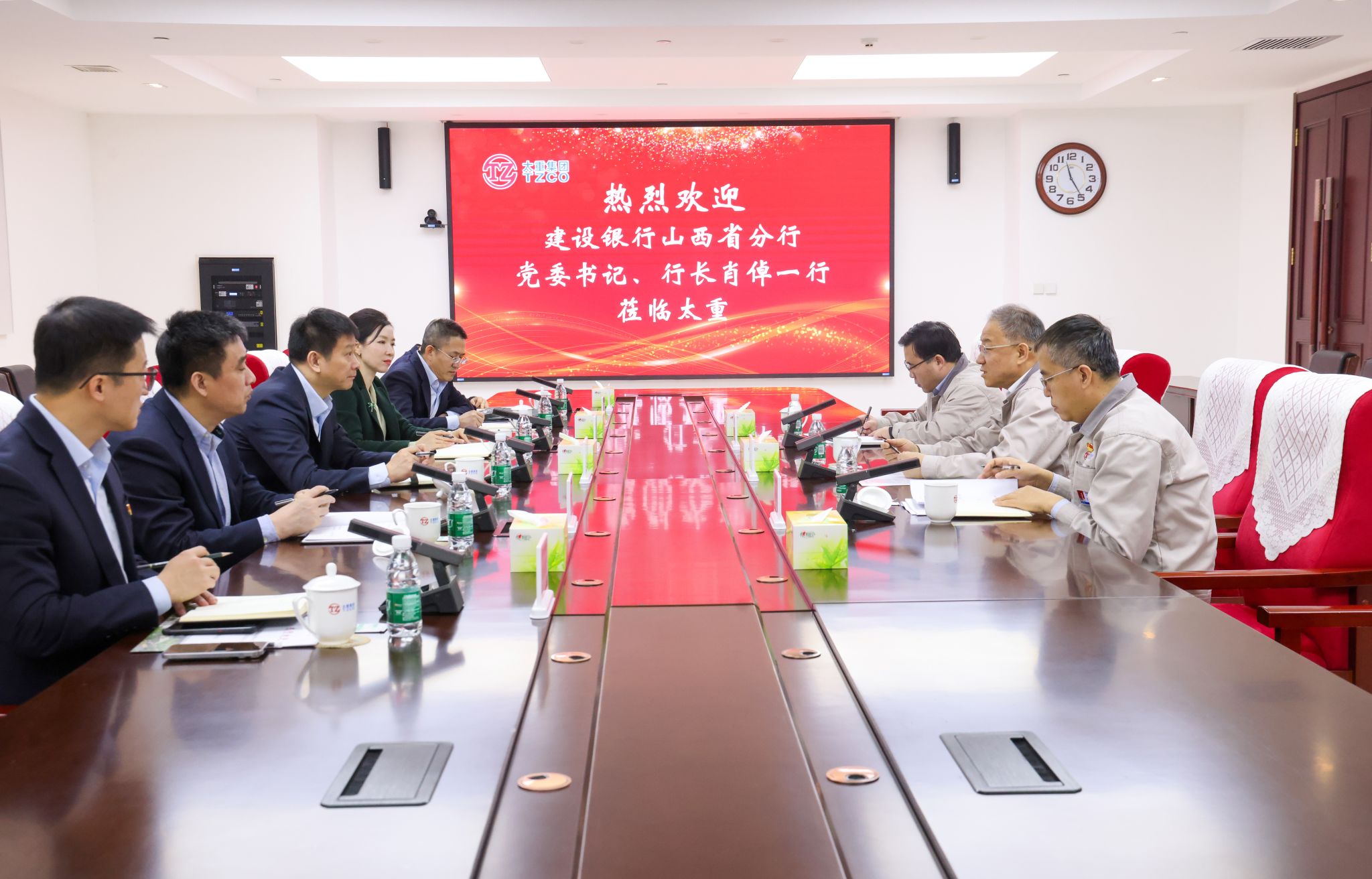12月25日,集團(tuán)公司黨委書記、董事長(zhǎng)韓珍堂熱情接待了中國(guó)建設(shè)銀行山西省分行黨委書記、行長(zhǎng)肖倬一行,雙方圍繞深化銀企合作、搭建互惠橋梁、促進(jìn)共贏發(fā)展進(jìn)行深入交流。
