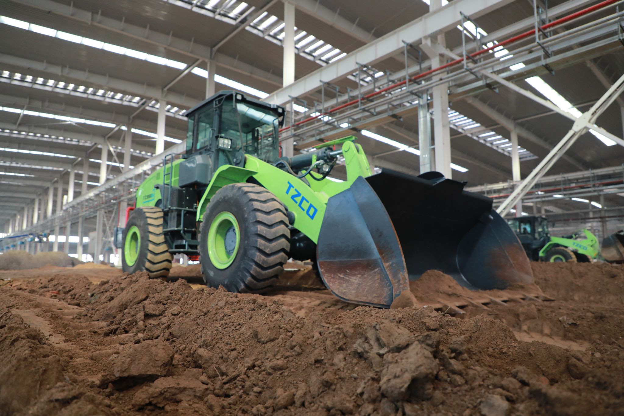 走進(jìn)項(xiàng)目一標(biāo)段焊接加工廠房,太重制造的TZ960Ev裝載機(jī)高舉鏟斗,威風(fēng)前行。它搭載著公司自主研發(fā)的電控系統(tǒng),動(dòng)力傳輸精準(zhǔn)高效,操作靈敏流暢。超強(qiáng)車架在重載下紋絲不動(dòng),智能液壓系統(tǒng)讓每一次掘進(jìn)都舉重若輕。此刻,這臺(tái)綠色巨獸正以零排放優(yōu)勢(shì),在項(xiàng)目建設(shè)現(xiàn)場(chǎng)釋放能量。