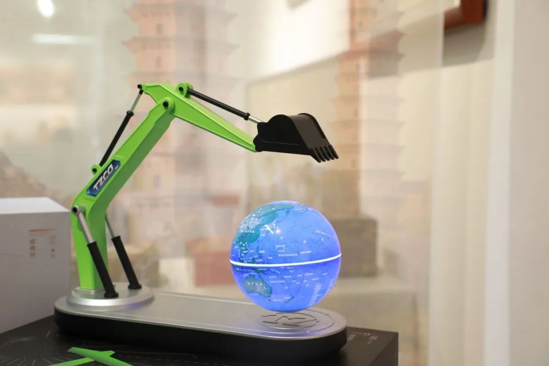 以明星產(chǎn)品氫能源挖掘機為原型,使用磁懸浮先進技術(shù),托起空中的蔚藍星球。重型機械的磅礴力量在此升華為桌面空間的科技美學(xué),生動訴說著太重“掘勝全球”的壯志——以智能化與綠色化駛向全球大市場!