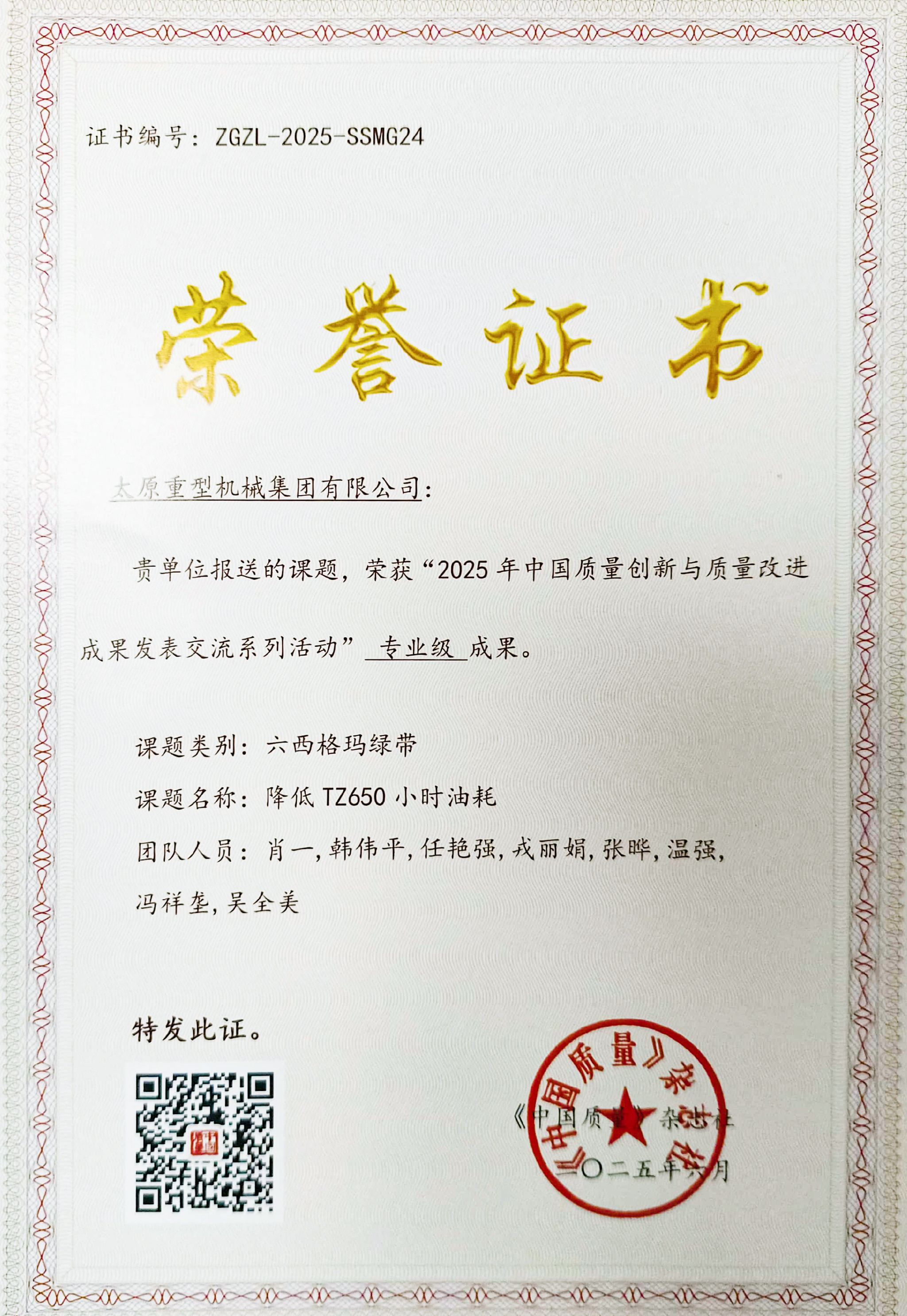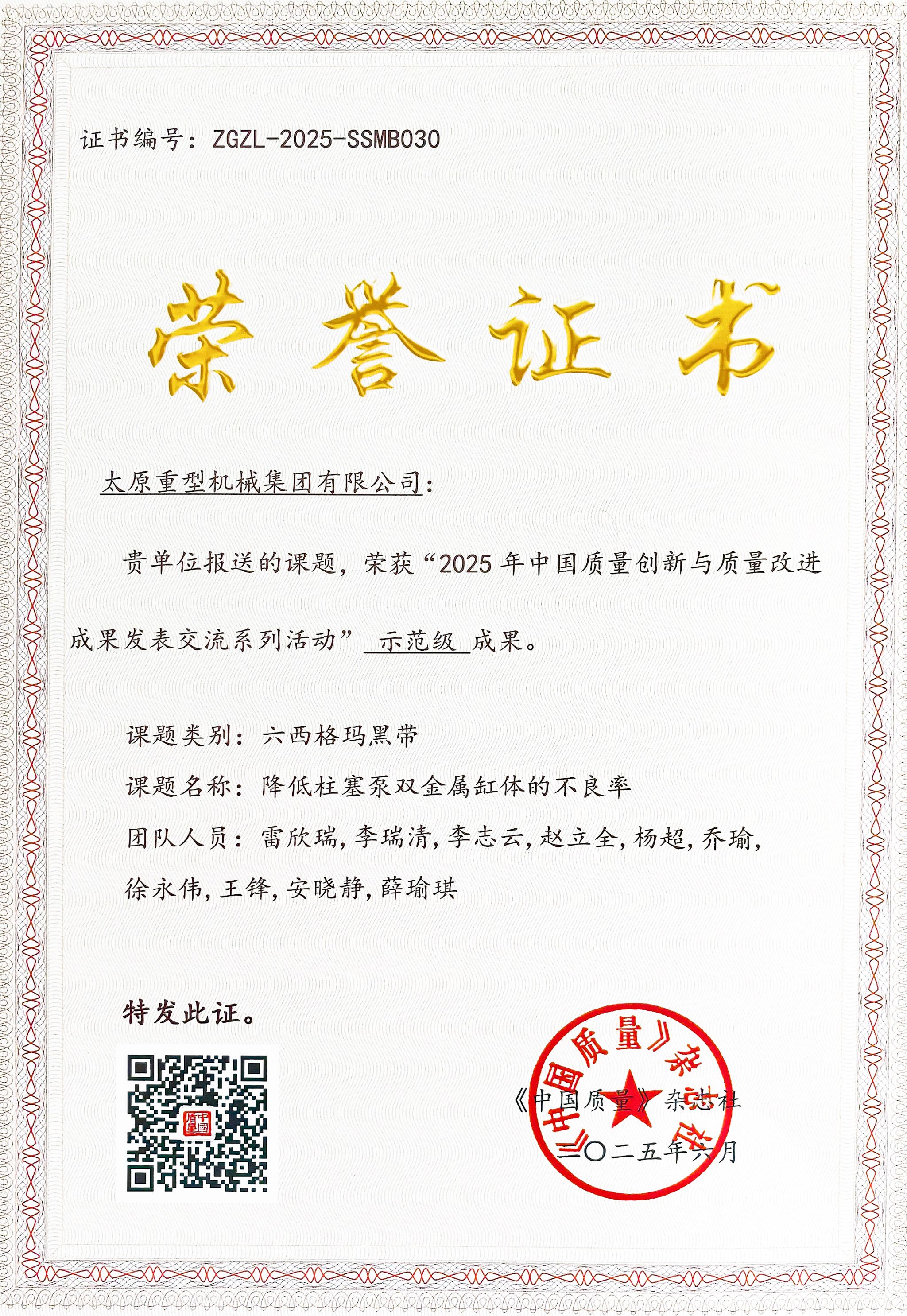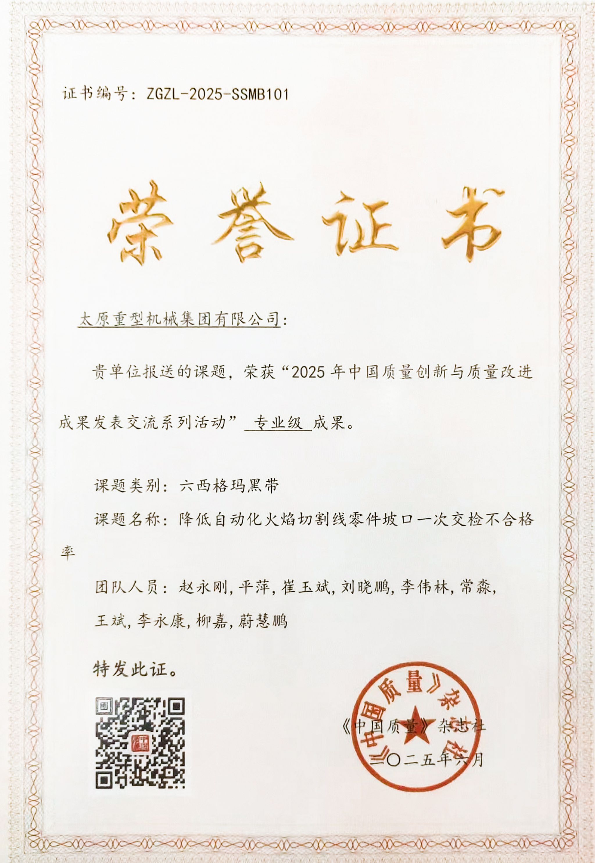 這份成績(jī)?cè)醋猿掷m(xù)的質(zhì)量管理投入。在中國(guó)質(zhì)量協(xié)會(huì)《中國(guó)質(zhì)量》雜志社組織的“2025年中國(guó)質(zhì)量創(chuàng)新與質(zhì)量改進(jìn)成果發(fā)表交流系列活動(dòng)”中,太重報(bào)送的6項(xiàng)六西格瑪成果憑借突出的技術(shù)創(chuàng)新性和實(shí)際效益脫穎而出,成功斬獲“示范級(jí)”“專業(yè)級(jí)”成果獎(jiǎng)項(xiàng),這也是太重連續(xù)第二年在該權(quán)威活動(dòng)中榮獲獎(jiǎng)項(xiàng)。