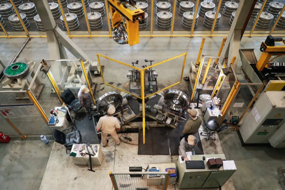 在這里,已經(jīng)可以看到車輪的雛形了。“塑型”之后,還要進(jìn)行熱處理。如果說“塑型”是外部打造,熱處理便是內(nèi)部修煉。內(nèi)外兼修,車輪的性能才更加穩(wěn)定。再經(jīng)過一系列的自動化精加工,車輪便生產(chǎn)出來了。