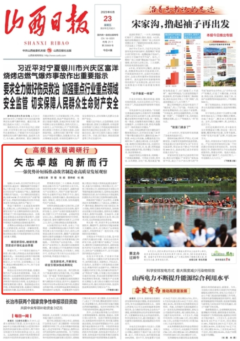 近日,山西日?qǐng)?bào)在頭版刊發(fā)《矢志卓越 向新而行——強(qiáng)優(yōu)勢(shì)補(bǔ)短板推動(dòng)我省制造業(yè)高質(zhì)量發(fā)展觀察》專欄文章,聚焦太重關(guān)鍵核心技術(shù)攻關(guān)進(jìn)行深入報(bào)道。實(shí)現(xiàn)高水平科技自立自強(qiáng),是中國(guó)式現(xiàn)代化建設(shè)的關(guān)鍵。太重作為我省唯一的“雙鏈主”企業(yè),持續(xù)完善技術(shù)研發(fā)體系,加快推動(dòng)全國(guó)重點(diǎn)實(shí)驗(yàn)室建設(shè),多次闖關(guān)奪隘突破重大關(guān)鍵核心技術(shù),有力推動(dòng)了全省制造業(yè)振興,為助力我省產(chǎn)業(yè)轉(zhuǎn)型高質(zhì)量發(fā)展貢獻(xiàn)“太重”力量。