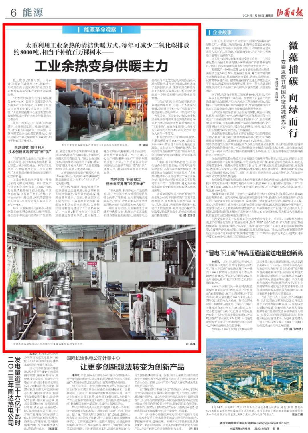 今日,山西日報《能源革命觀察》專欄,對太重集團聚焦國家“雙碳”目標,通過技術(shù)創(chuàng)新變廢為寶,將工業(yè)余熱變身供暖主力進行了重點報道。一直以來,太重集團持續(xù)踐行“綠水青山就是金山銀山”理念,著力構(gòu)建綠色環(huán)保長效工作機制,加快推動公司綠色低碳轉(zhuǎn)型發(fā)展,為實現(xiàn)國家戰(zhàn)略貢獻太重力量、展現(xiàn)國企擔(dān)當。