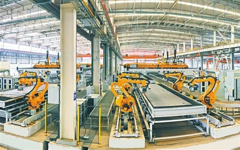距離老廠區(qū)50公里外,山西轉(zhuǎn)型綜改示范區(qū)瀟河產(chǎn)業(yè)園區(qū)內(nèi),太重智能高端裝備產(chǎn)業(yè)園已拔地而起。在這里,太重所有裝備制造都能實(shí)現(xiàn)以工序?yàn)閱挝坏倪B續(xù)生產(chǎn)。各種機(jī)器人設(shè)備夜以繼日“上班”,智能導(dǎo)引搬運(yùn)車來回穿梭、自動取送貨,一張鋼板經(jīng)過全流程生產(chǎn)線后,即可最大程度地切割出各類高質(zhì)量零部件,智能產(chǎn)線上“只見物,不見人”。