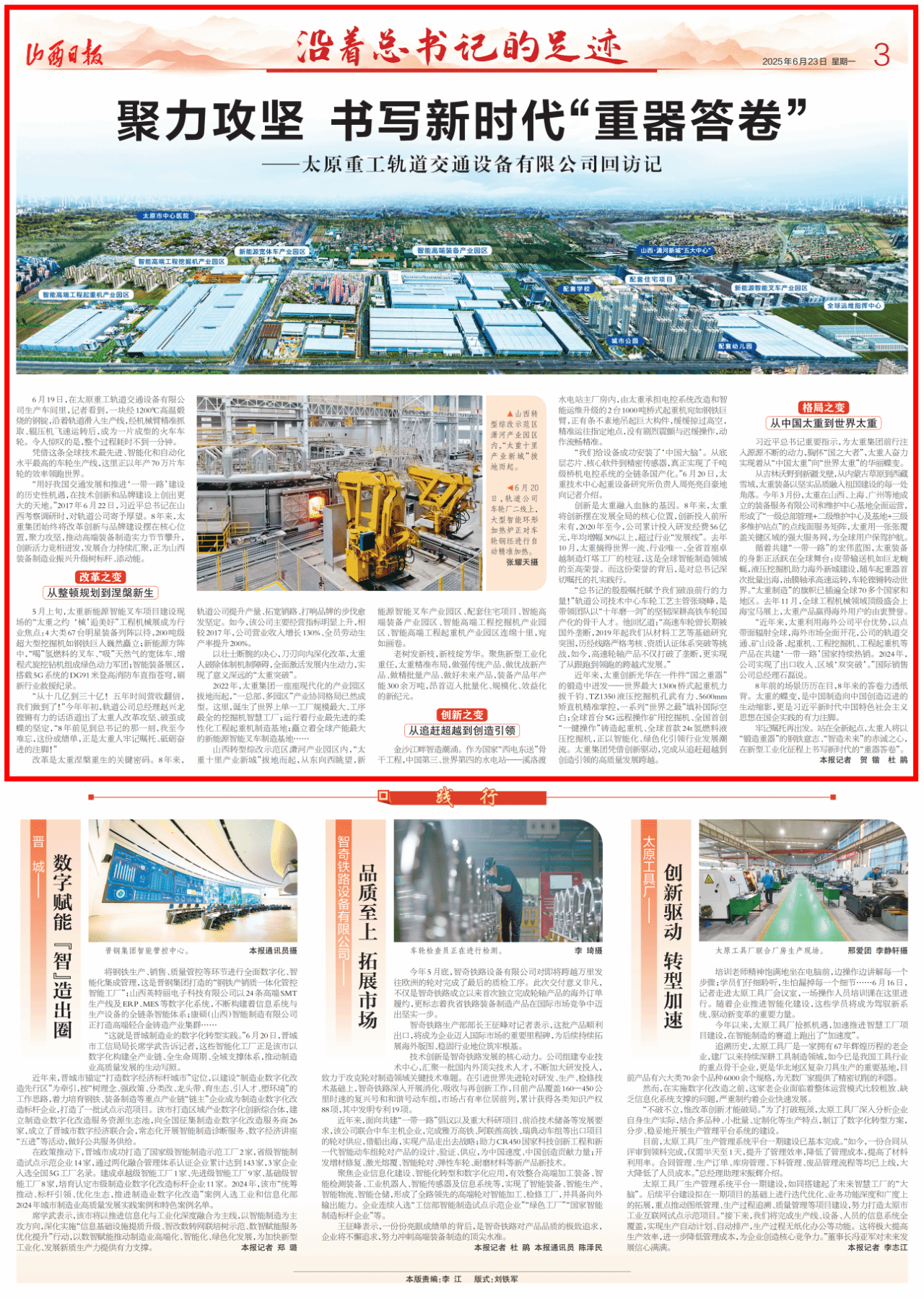 在習(xí)近平總書(shū)記考察調(diào)研太重八周年之際,山西新聞聯(lián)播、山西日?qǐng)?bào)【沿著總書(shū)記的足跡】專欄聚焦太重,感知公司“智”造高地的澎湃動(dòng)能,展現(xiàn)太重的改革之變、創(chuàng)新之變、格局之變,見(jiàn)證太重人加速競(jìng)跑的具體實(shí)踐!