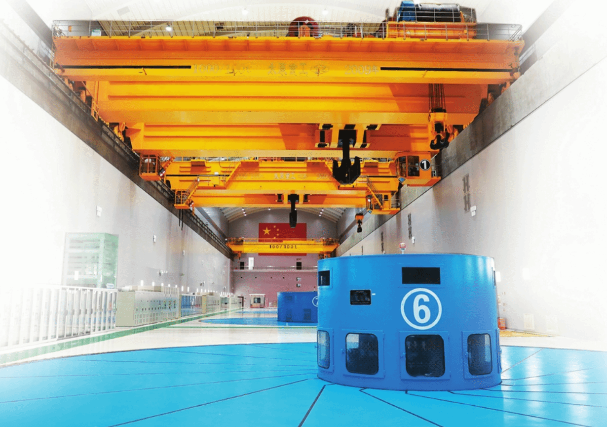 踏入這座智能化水平位居世界前列的水電站主廠房,映入眼簾的是震撼的工業(yè)圖景,耳中持續(xù)回響側(cè)排電箱發(fā)出的規(guī)律嗡鳴。廠房上空數(shù)十米處,太重研制的兩臺(tái)1000t橋式起重機(jī)正有條不紊地吊起巨大構(gòu)件緩緩掠過(guò)高空,精準(zhǔn)地運(yùn)往指定地點(diǎn)。沒(méi)有想象中的劇烈震顫與遲緩操作,所有動(dòng)作都流暢而精準(zhǔn),令人贊嘆。