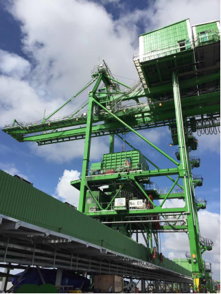 公司為芬蘭印尼起重機公司提供了6臺套岸邊集裝箱起重機,設(shè)備整機發(fā)往印尼國家港務局碼頭。岸橋前伸距48米、軌距26米、吊鉤橫梁起重能力50噸、集裝箱吊具下起重能力40噸,該項目是我司首次整機、制造、調(diào)試及發(fā)運的大型岸邊集裝箱起重機,增加了印尼國家碼頭吞吐量,提升碼頭大型集裝箱裝卸的效率。