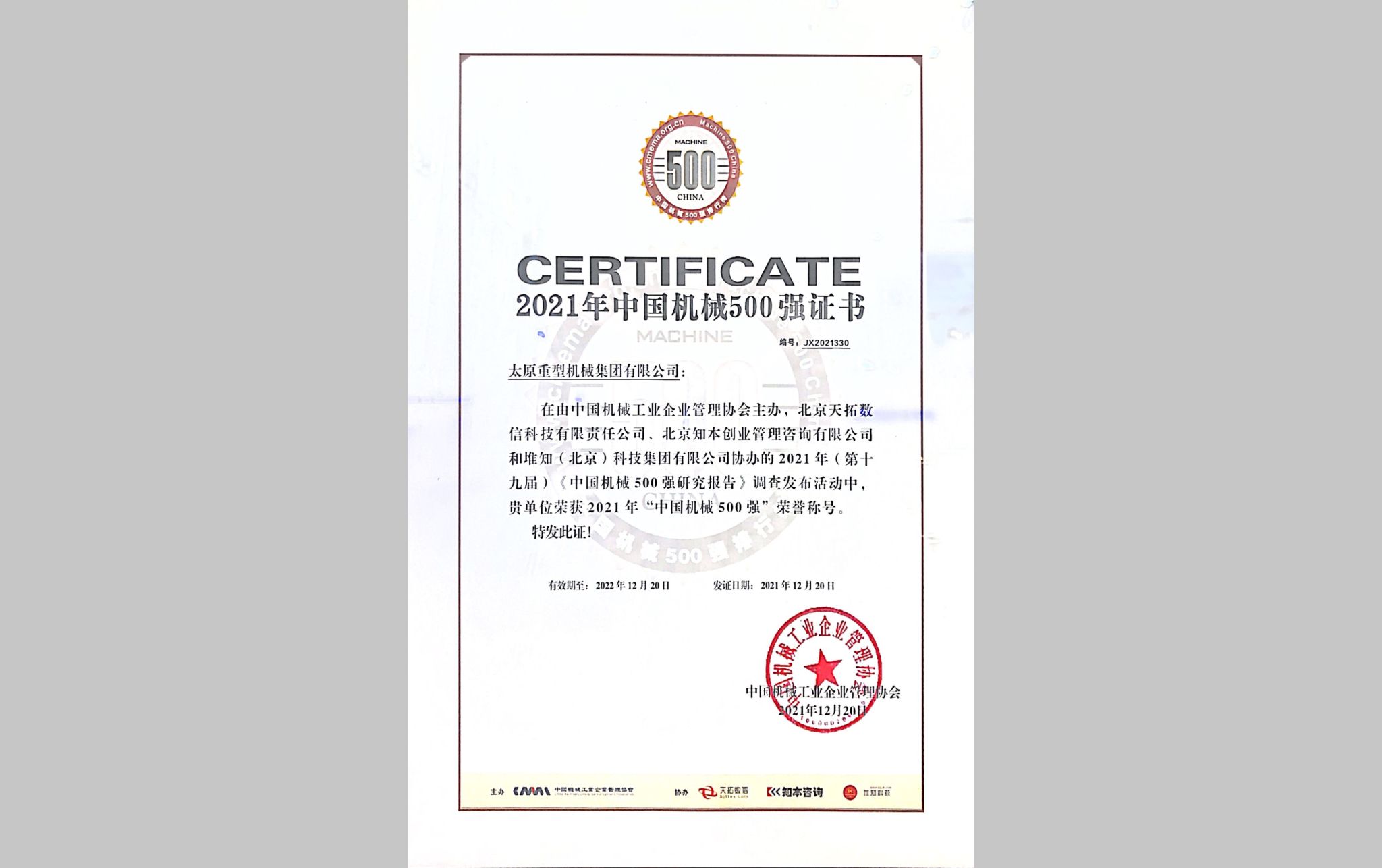2022年12月21日,全球暨中國機(jī)械500強(qiáng)研究報告發(fā)布會在陜西西安舉行,太重集團(tuán)憑借優(yōu)異表現(xiàn)和雄厚實力繼續(xù)蟬聯(lián)上榜,并躍升至第242位。